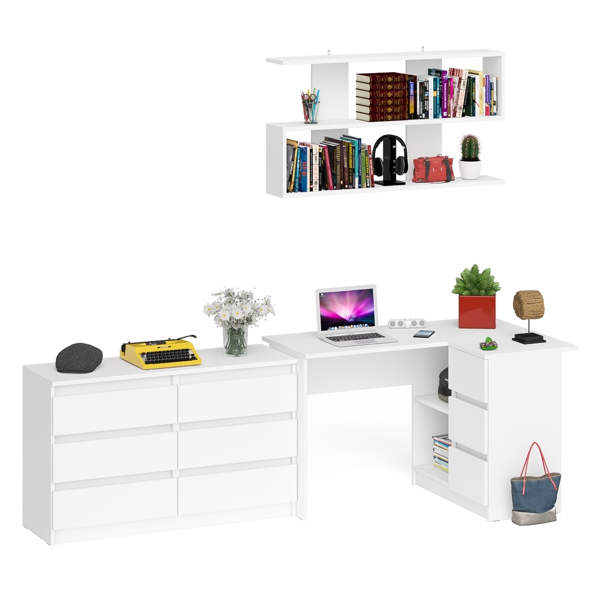 Отзывы о Столплит Стол угловой компьютерный Мори МС-16 правый с книжной полкой и комодом на шесть ящиков Белый