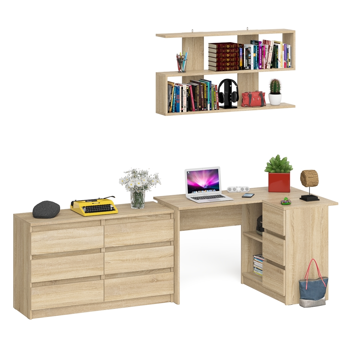 Отзывы о Столплит Стол угловой компьютерный Мори МС-16 правый с книжной полкой и комодом на шесть ящиков Дуб сонома