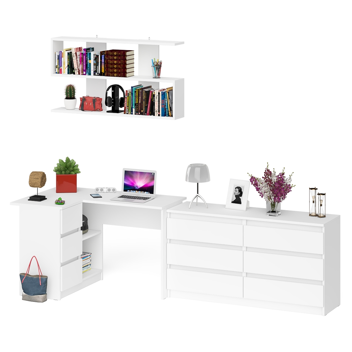 Отзывы о Столплит Стол угловой компьютерный Мори МС-16 левый с навесной книжной полкой и комодом МК1380.6 Белый