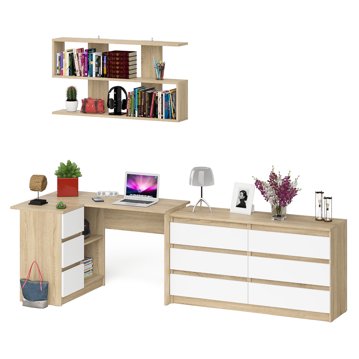 Отзывы о Столплит Стол угловой компьютерный Мори МС-16 левый с навесной книжной полкой и комодом МК1380.6 Дуб Сонома, Белый