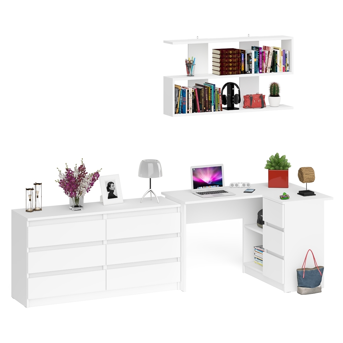 Отзывы о Столплит Комод широкий 6-ть ящиков Мори МК1380.6 с угловым компьютерным столом МС-16 правым и открытой книжной полкой Белый