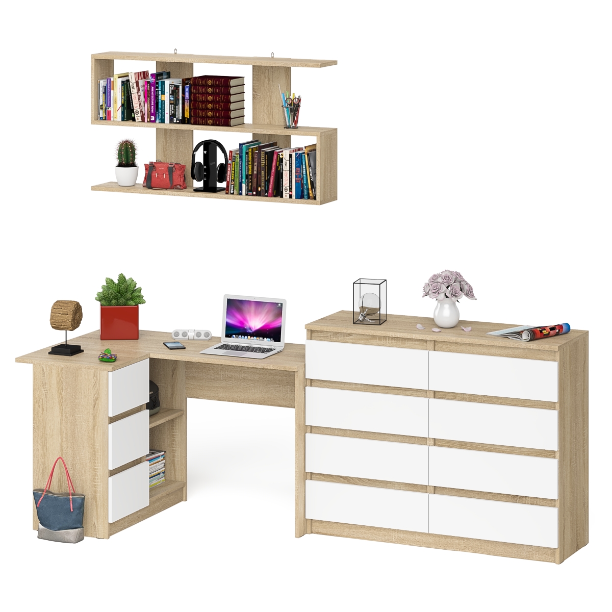 Отзывы о Столплит Книжная полка Мори 1200 с комодом 1200.8 и компьютерным столом МС-16 левым Дуб Сонома, Белый