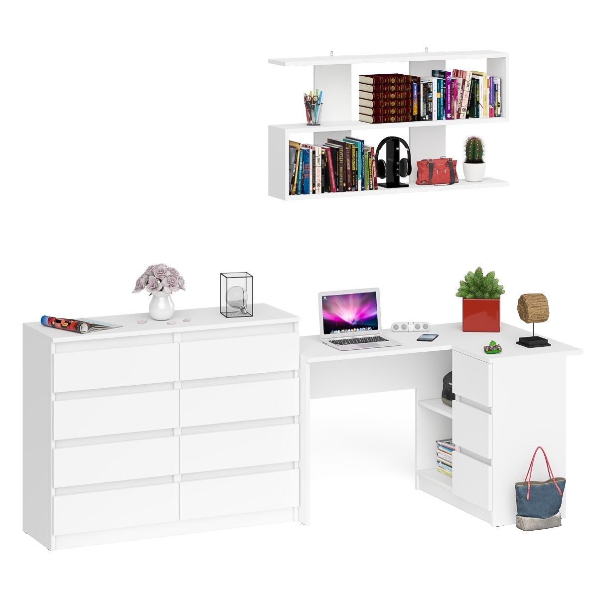 Отзывы о Столплит Стол компьютерный угловой с ящиками Мори МС-16 правый с навесной полкой и комодом МК1200.8 Белый