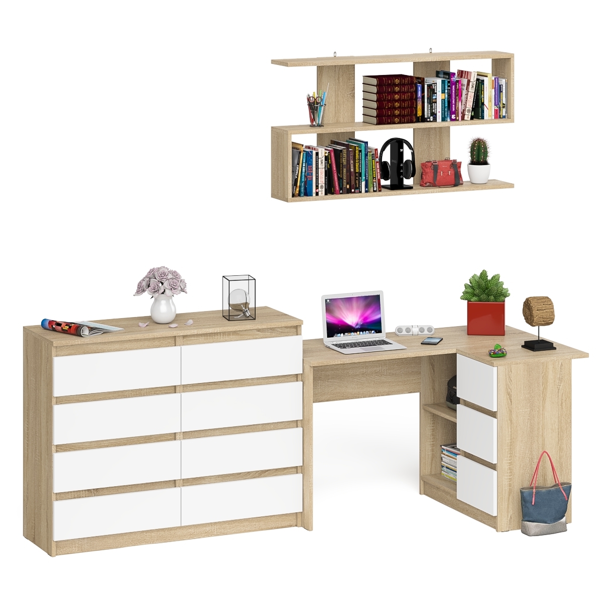 Отзывы о Столплит Стол компьютерный угловой с ящиками Мори МС-16 правый с навесной полкой и комодом МК1200.8 Дуб Сонома, Белый