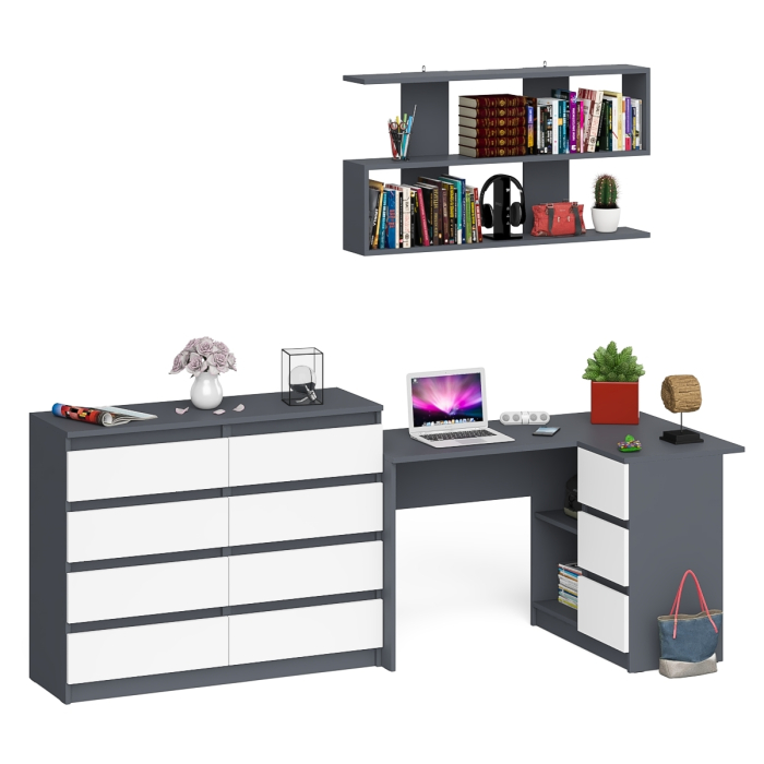 Выполнено в 5 цветах: белый, графит, графит/белый, дуб сонома и дуб сонома/белый.