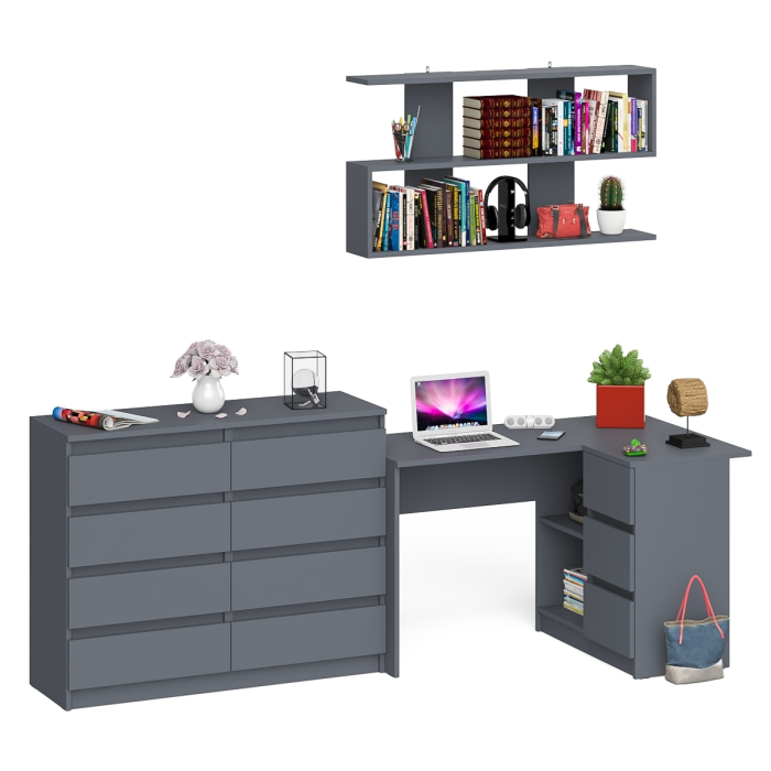 Отзывы о Столплит Стол компьютерный угловой с ящиками Мори МС-16 правый с навесной полкой и комодом МК1200.8 Графит