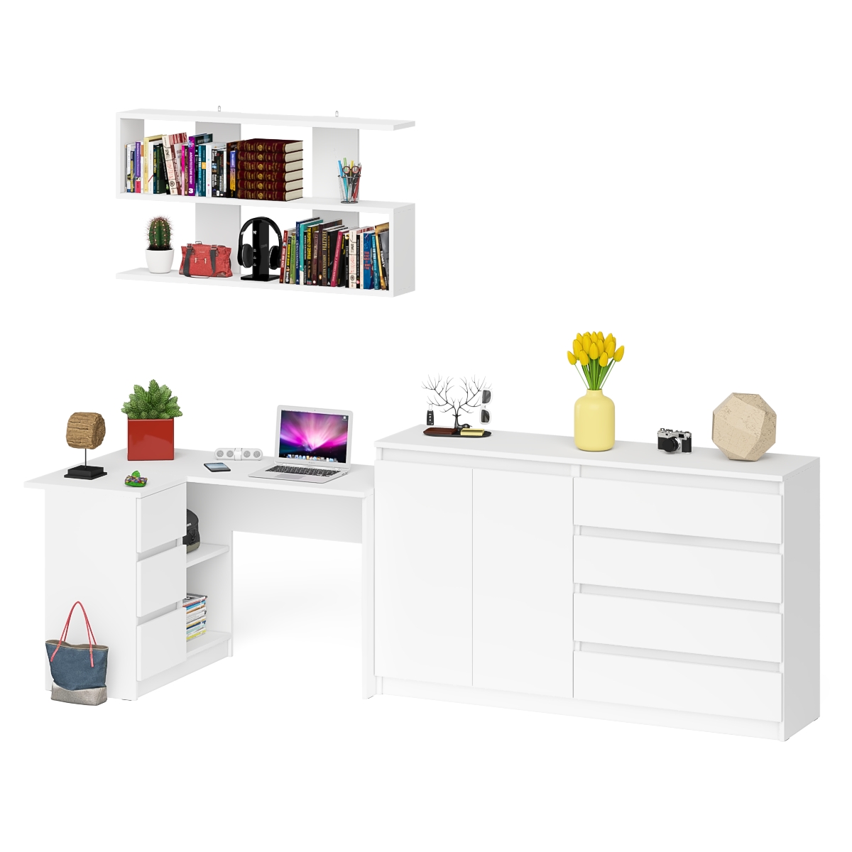 Отзывы о Столплит Угловой компьютерный стол с тремя ящиками Мори МС-16 левый с тумбой-комодом и книжной полкой Белый