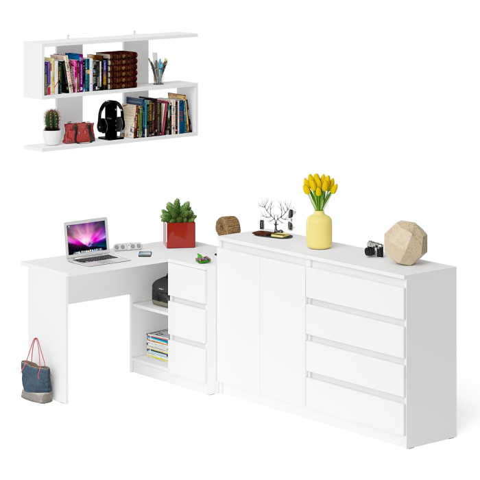 Отзывы о Столплит Тумба-комод МК1600.1 Мори с навесной книжной полкой и угловой компьютерный стол МС-16 правый Белый