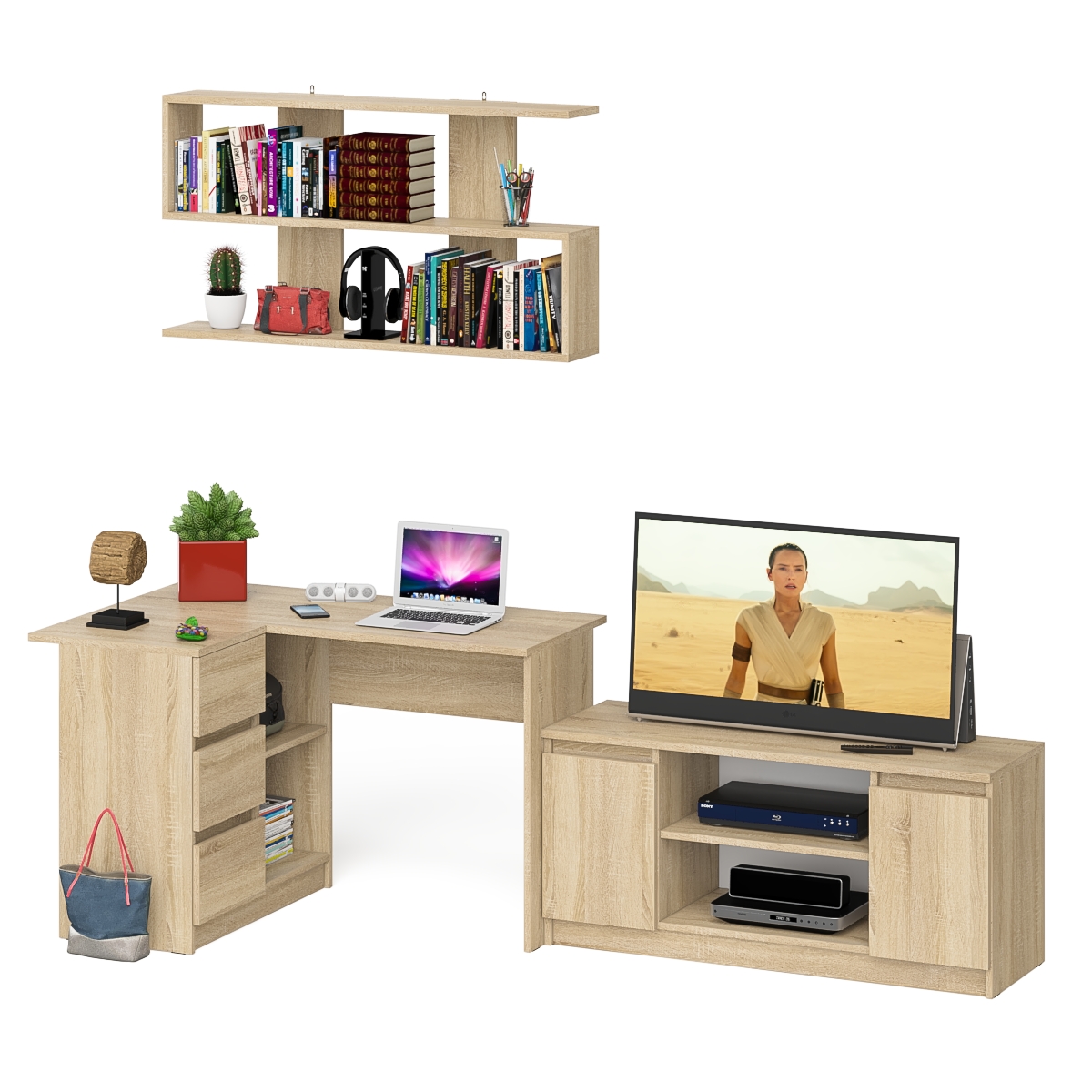 Отзывы о Столплит Угловой стол компьютерный Мори МС-16 левый с тумбой под ТВ и полкой для книг Дуб сонома