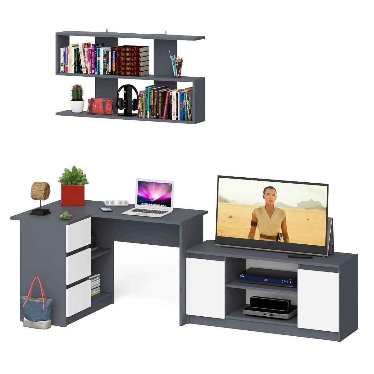 Отзывы о Столплит Угловой стол компьютерный Мори МС-16 левый с тумбой под ТВ и полкой для книг Графит/Белый