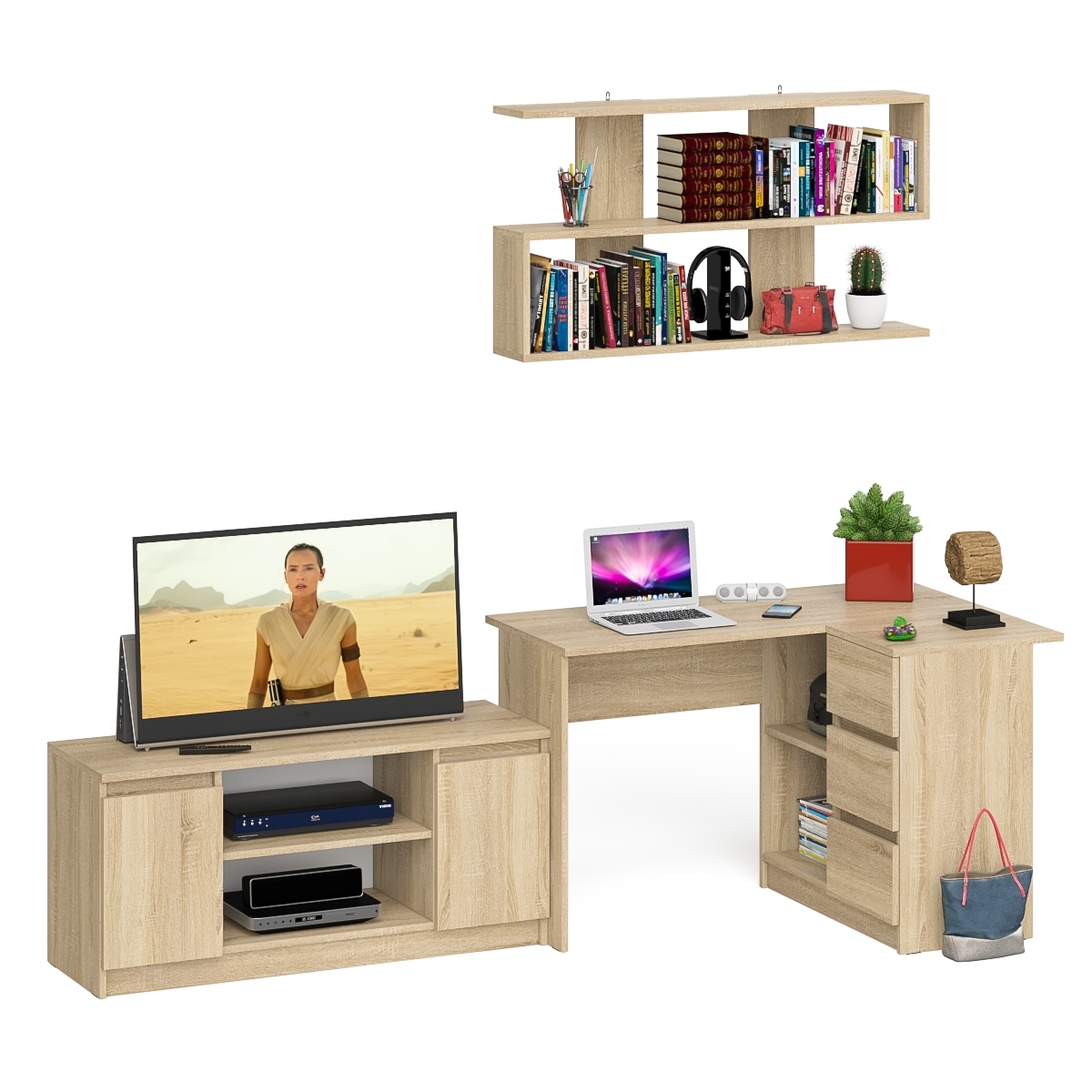 Отзывы о Столплит Стол угловой компьютерный Мори МС-16 правый с книжной полкой и ТВ-тумбой МТВ1200.1 Дуб сонома