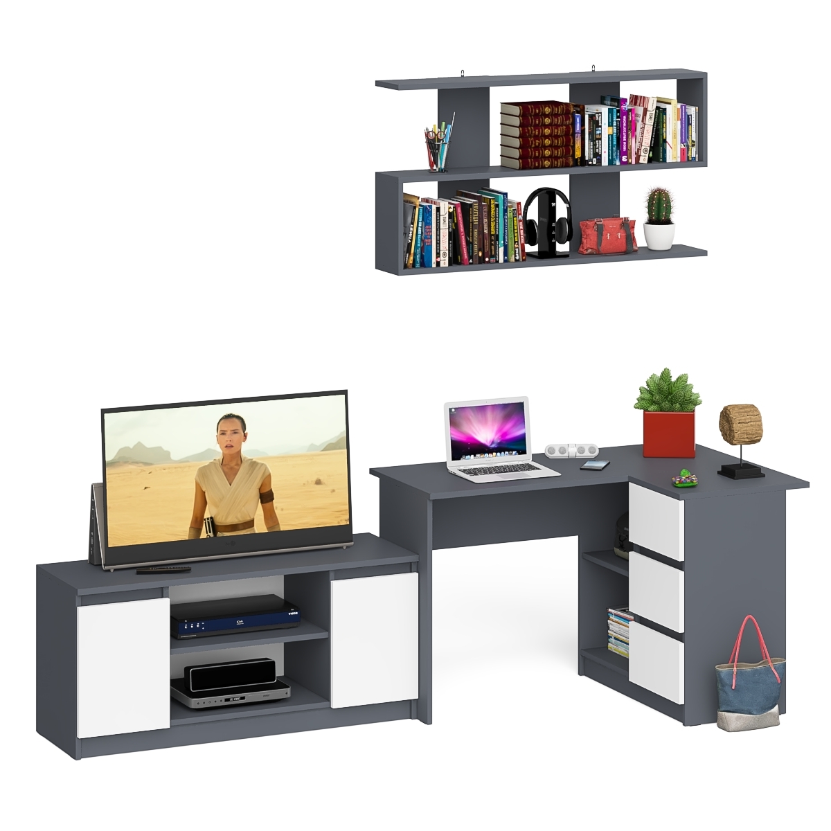 Отзывы о Столплит Стол угловой компьютерный Мори МС-16 правый с книжной полкой и ТВ-тумбой МТВ1200.1 Графит/Белый