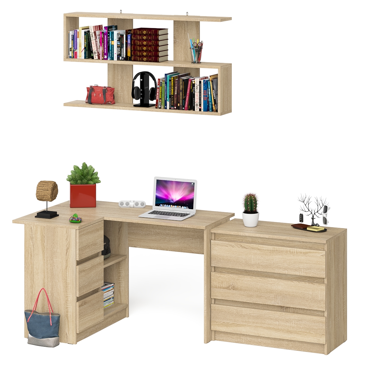 Комод 800 на три ящика с компьютерным столом для работы МС-16 Мори левый и открытой полкой 1200 - минималистичный дизайн и доступная цена позволяет наслаждаться качественной и современной мебелью без значительных финансовых затрат! Комплектация включает угловой компьютерный стол Мори МС-16 левый, комод три ящика Мори МК800.1 и навесную полку Плк-1200. Продуманная конструкция позволяет убрать лишние предметы, тем самым сохраняя единый стиль оформления помещения. Отсутствие ручек главное преимущество данной модели. Роль ручек выполняют сами фасады.