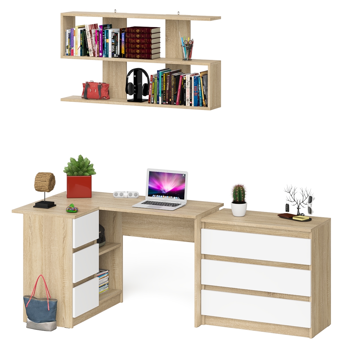 Комод на три ящика Мори МК800.1 с компьютерным столом для работы левый и открытой полкой (Дуб Сонома, Белый) Код I0000451135