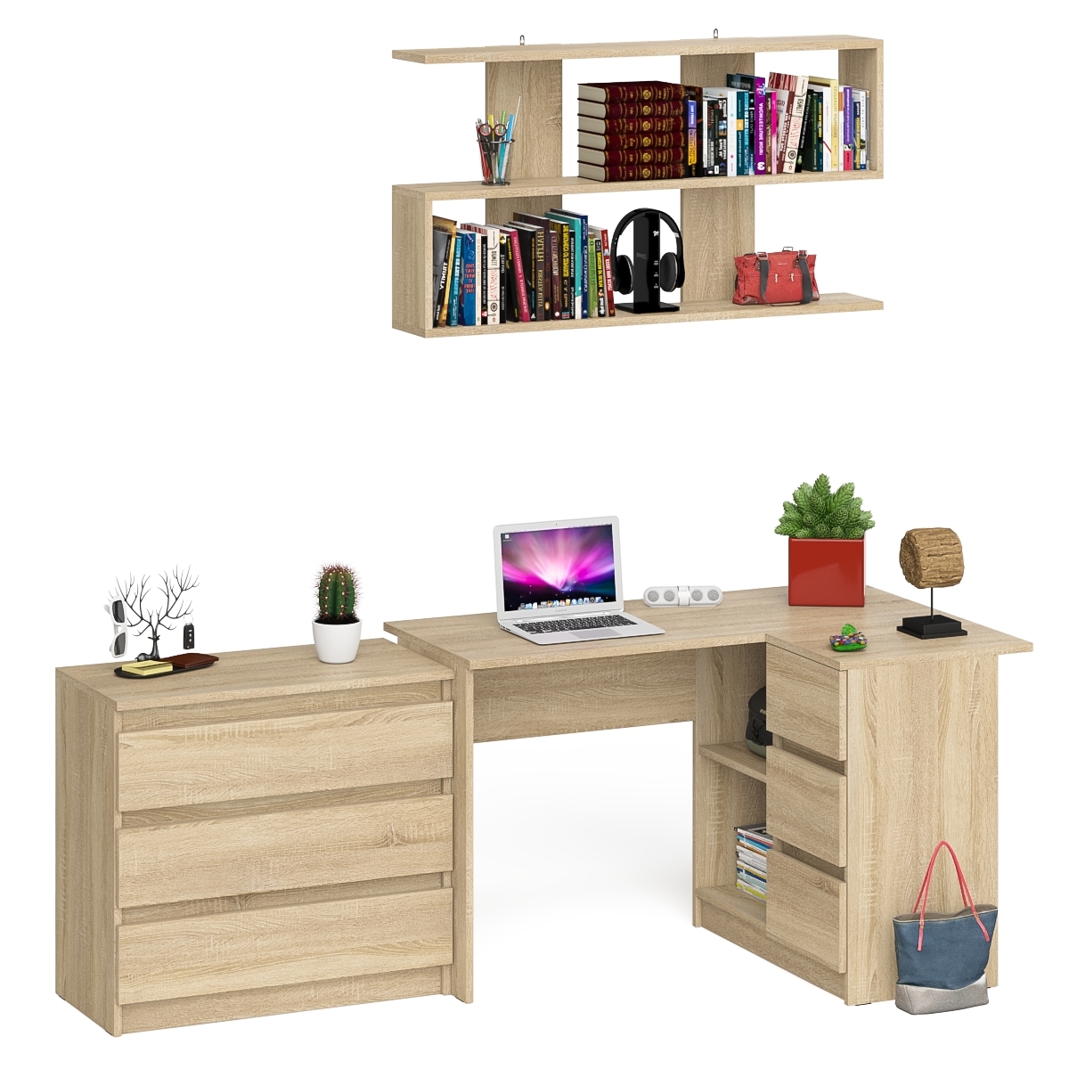 Отзывы о Столплит Стол компьютерный Мори МС-16 правый с навесной полкой и комодом МК800.1 Дуб сонома