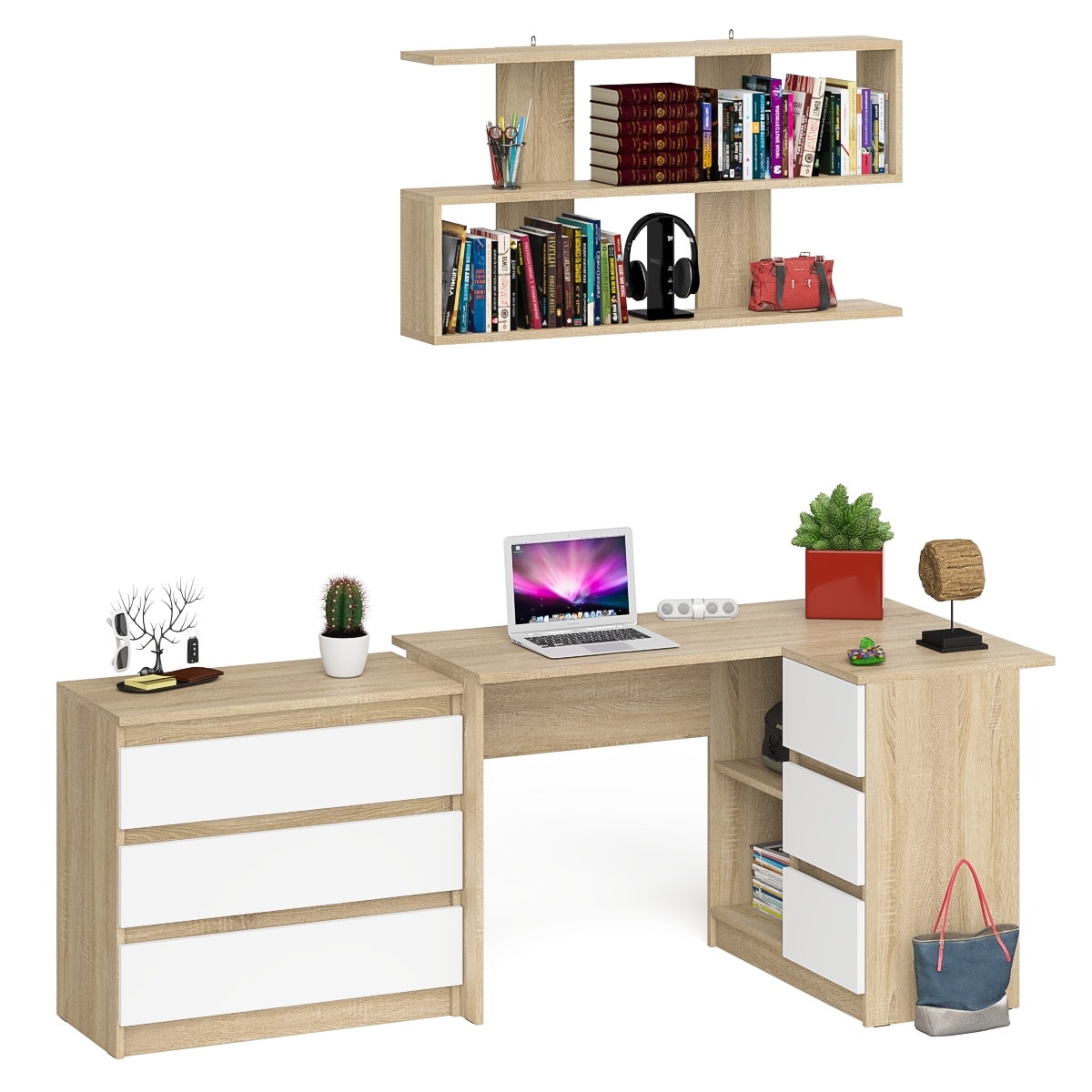 Отзывы о Столплит Стол компьютерный Мори МС-16 правый с навесной полкой и комодом МК800.1 Дуб Сонома, Белый