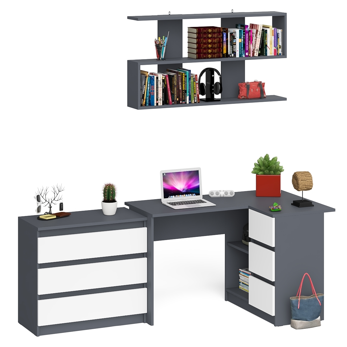 Выполнено в 5 цветах: белый, графит, графит/белый, дуб сонома и дуб сонома/белый.