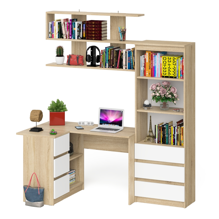 Отзывы о Столплит Уголок школьника Мори с угловым столом и полкой и стеллажом Дуб Сонома, Белый