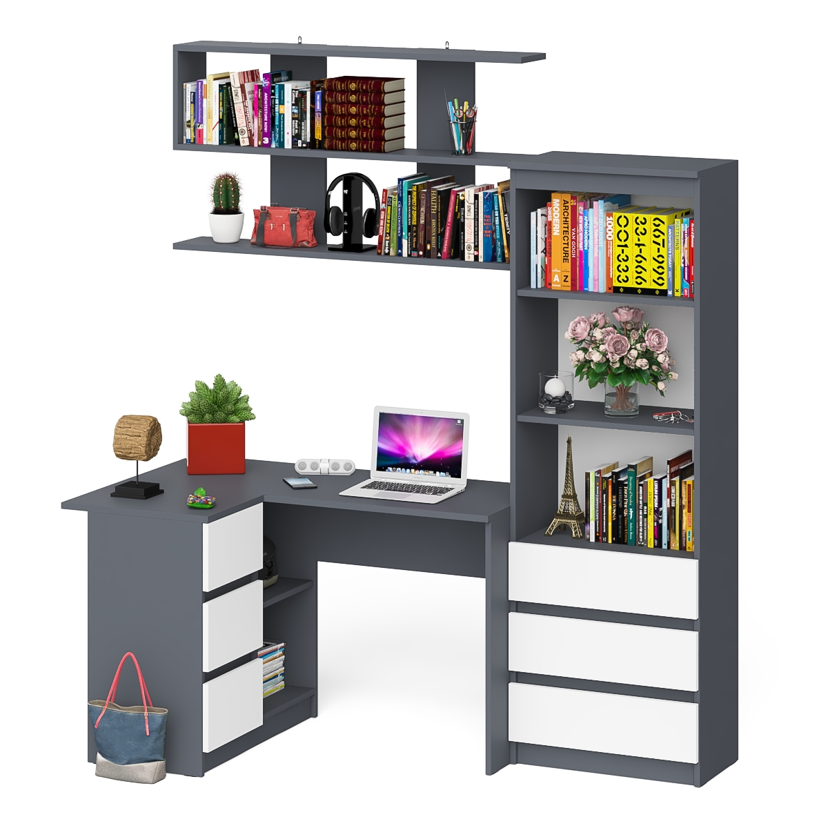 Отзывы о Столплит Уголок школьника Мори с угловым столом и полкой и стеллажом Графит/Белый