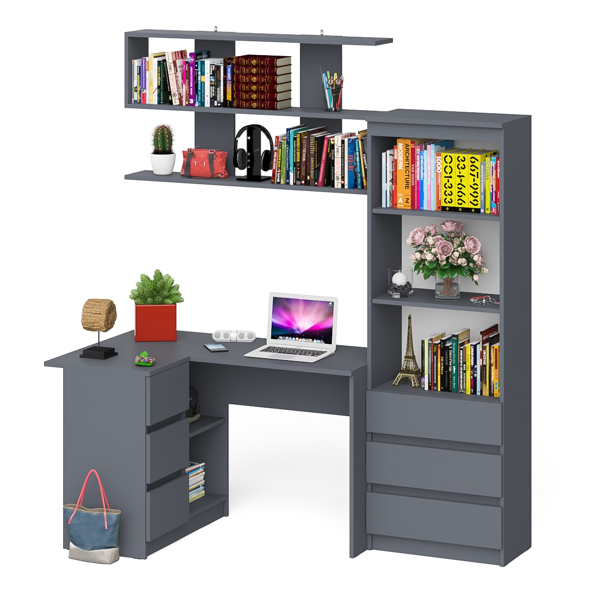 Уголок школьника Мори с угловым столом и полкой и стеллажом (Графит) Код I0000451142