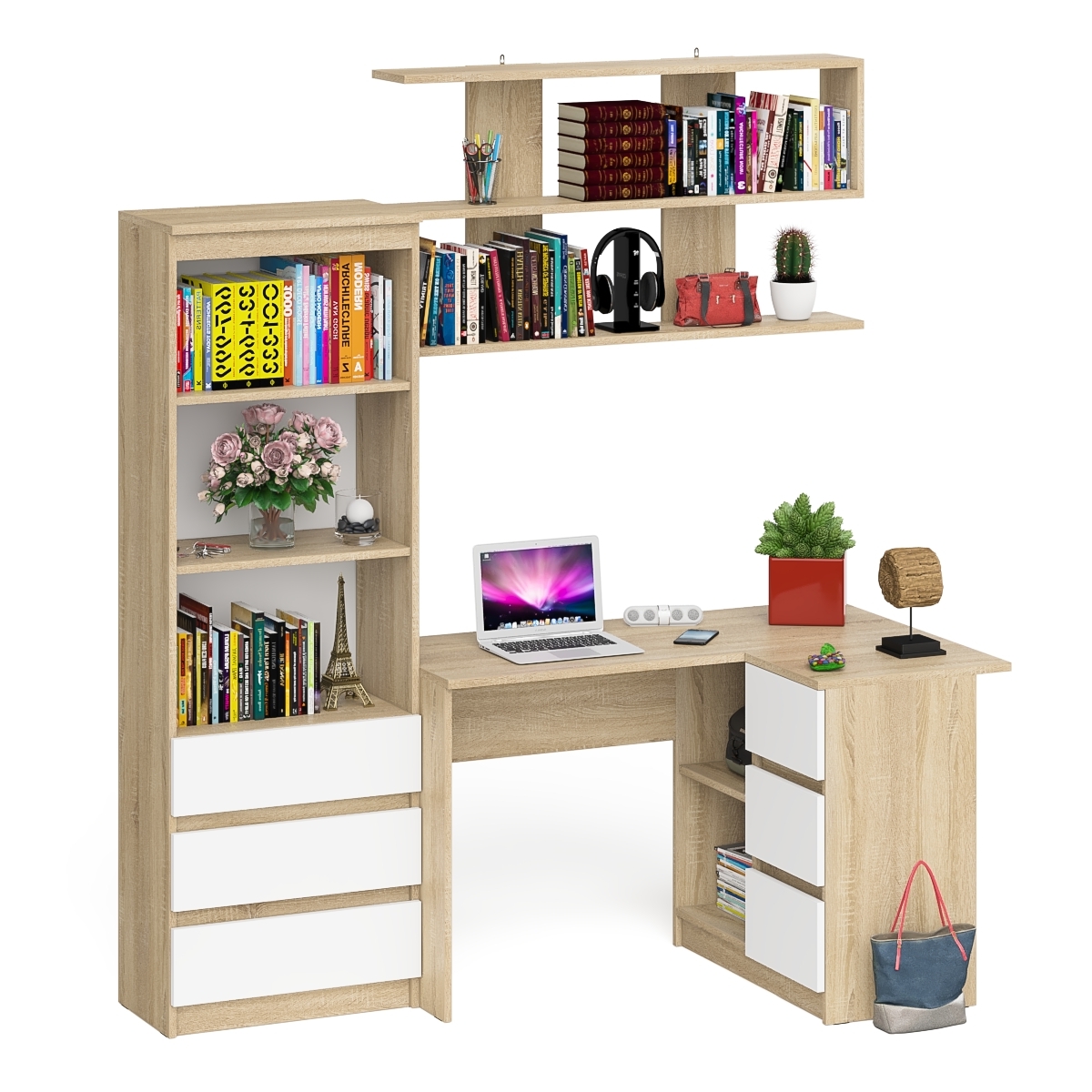 Отзывы о Столплит Рабочее место с угловым столом Мори МС-16 правым со стеллажом и полкой Дуб Сонома, Белый