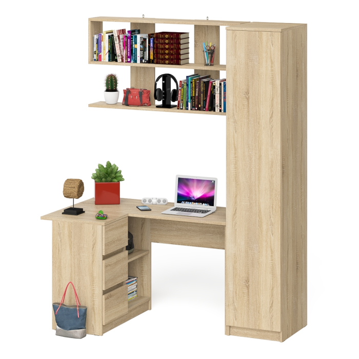Отзывы о Столплит Угловой компьютерный стол с ящиками Мори МС-16 левый с книжной полкой и пеналом с полками Дуб сонома