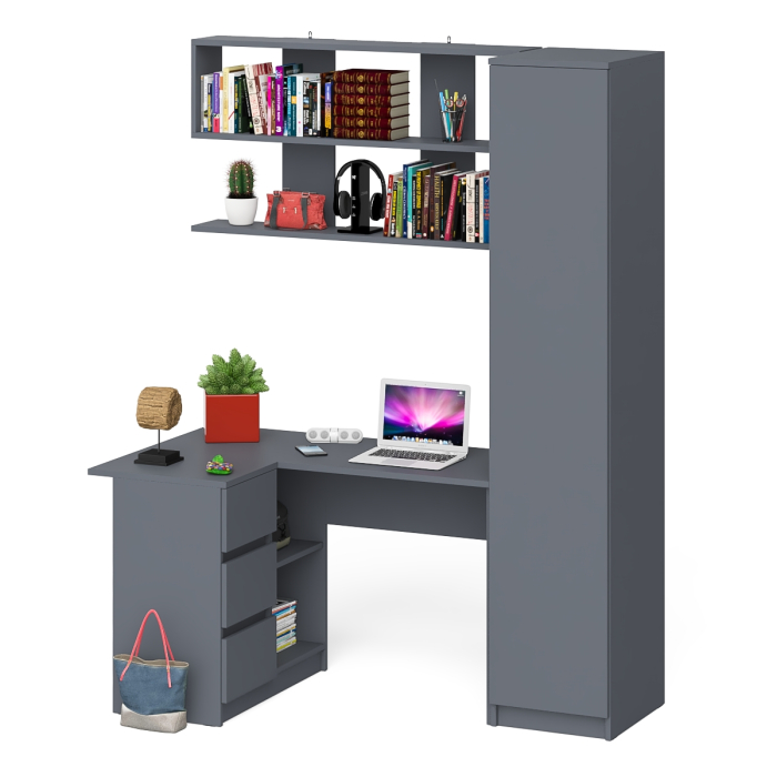 Отзывы о Столплит Угловой компьютерный стол с ящиками Мори МС-16 левый с книжной полкой и пеналом с полками Графит