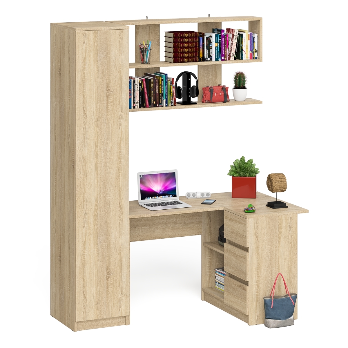 Отзывы о Столплит Стол угловой компьютерный Мори МС-16 правый с пеналом с полками и навесной открытой полкой 1200 Дуб сонома
