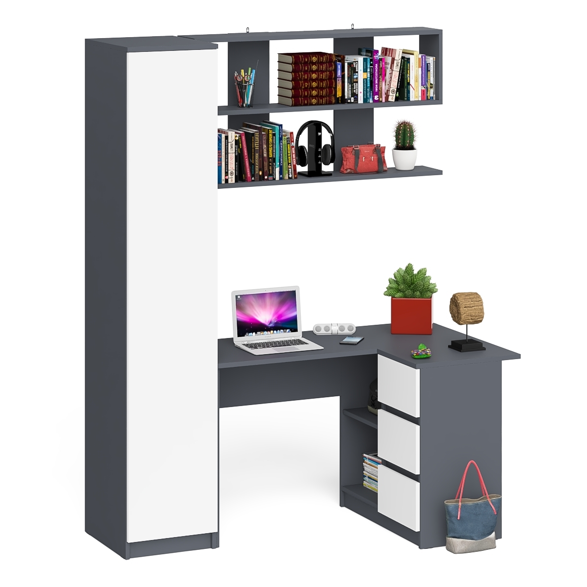 Отзывы о Столплит Стол угловой компьютерный Мори МС-16 правый с пеналом с полками и навесной открытой полкой 1200 Графит/Белый