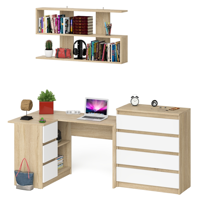 Отзывы о Столплит Стол компьютерный Мори МС-16 с тремя ящиками слева с книжной полкой на 1200 и комод на 4-ре ящика Дуб Сонома, Белый