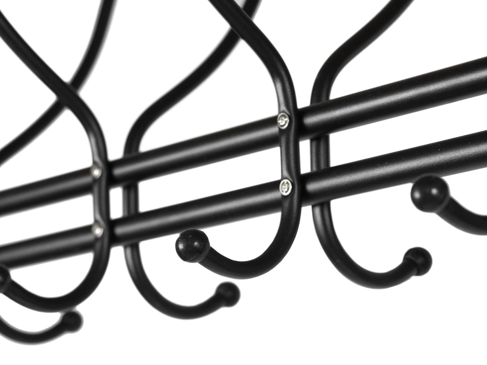 Вешалка рассчитана максимально на 16 посетителей: 12 крючков для одежды, столько же для головных уборов.