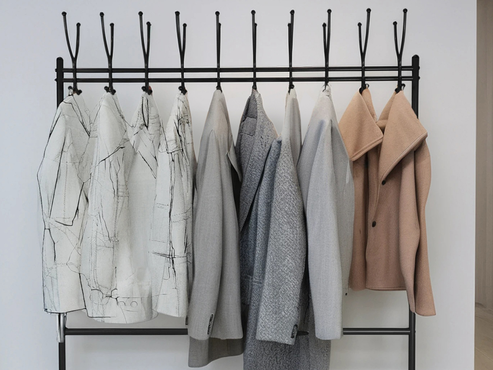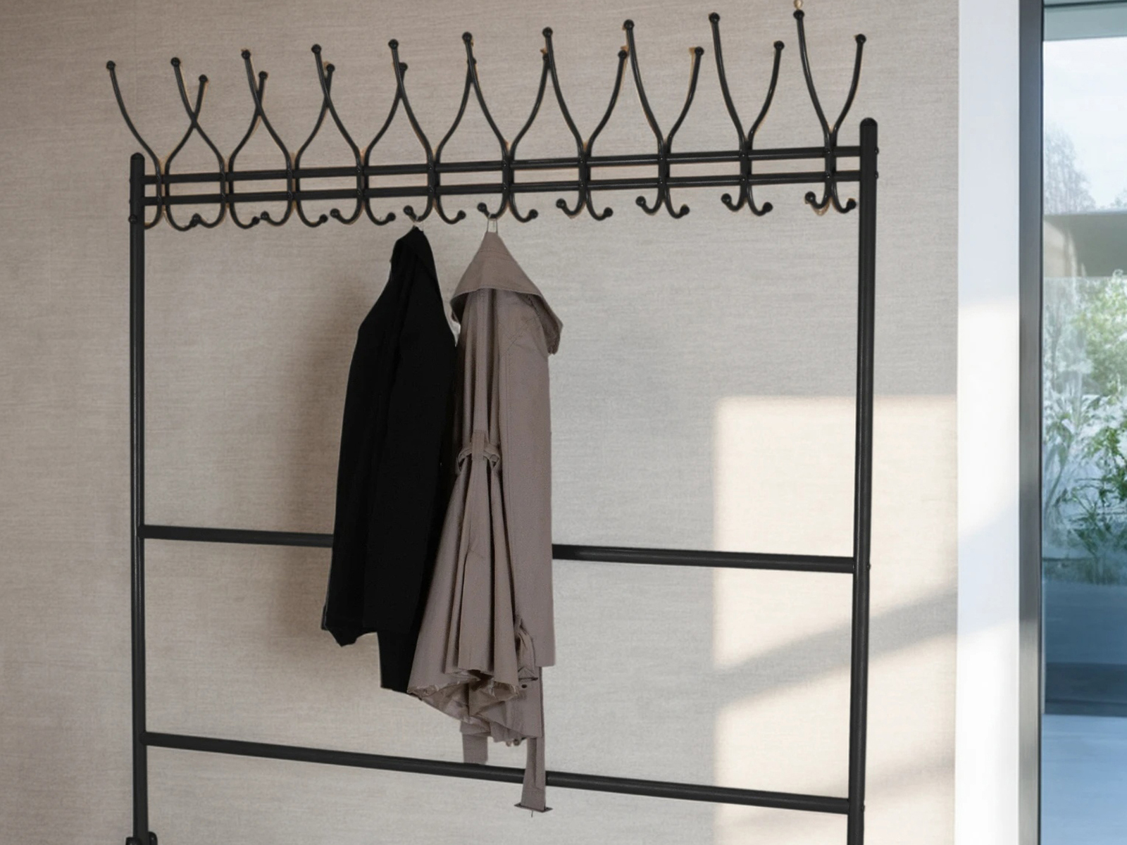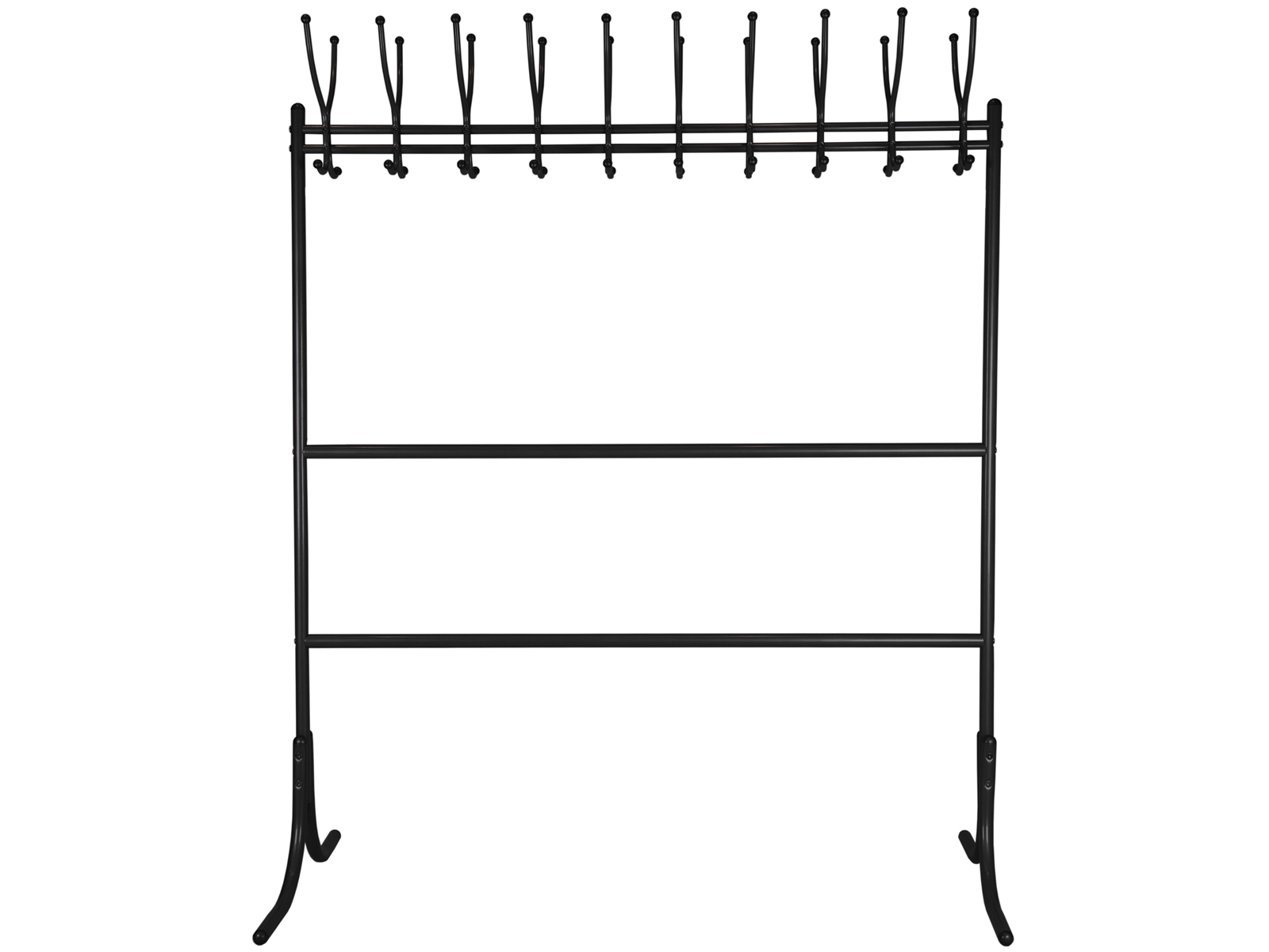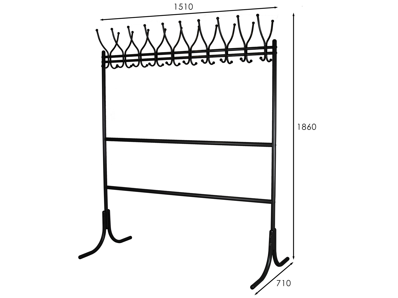 Вешалка рассчитана максимально на 20 посетителей: 20 крючков для одежды, столько же для головных уборов