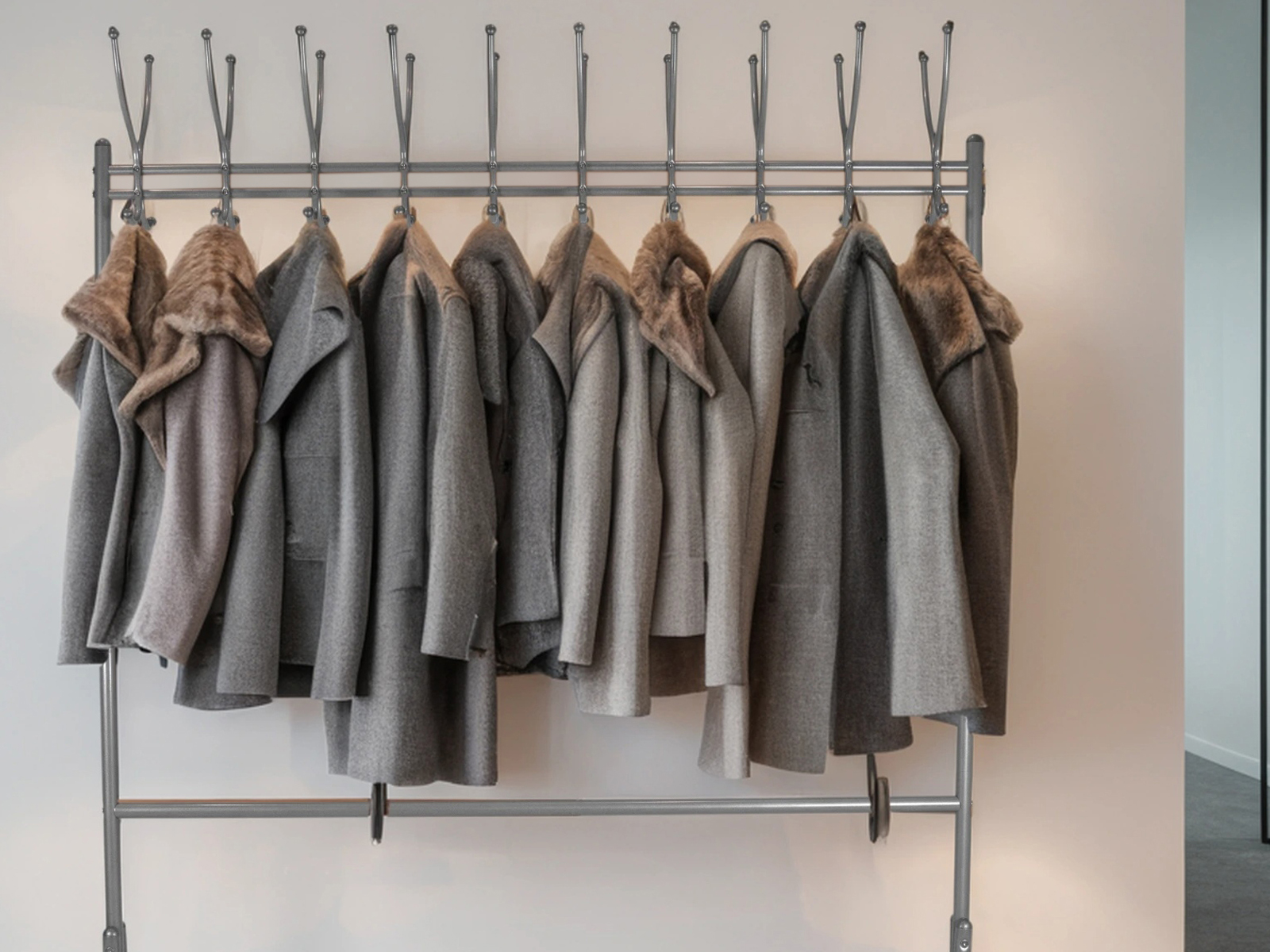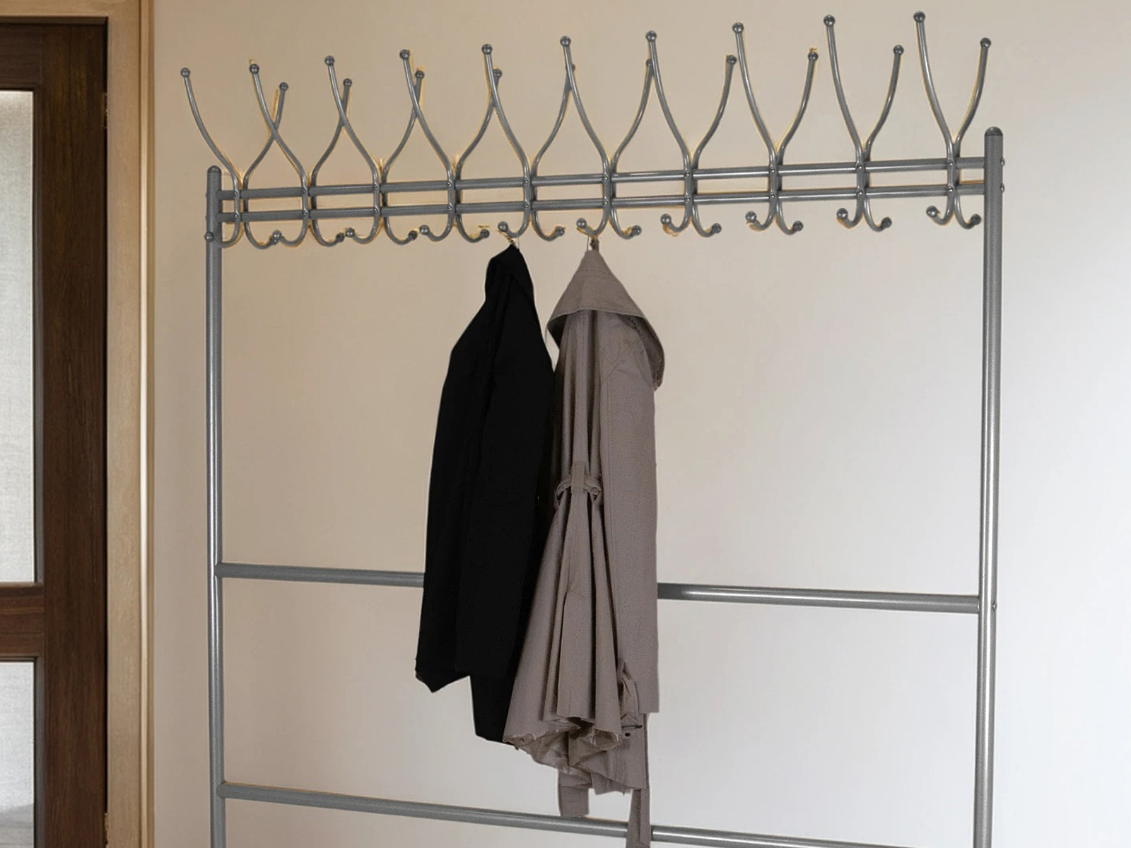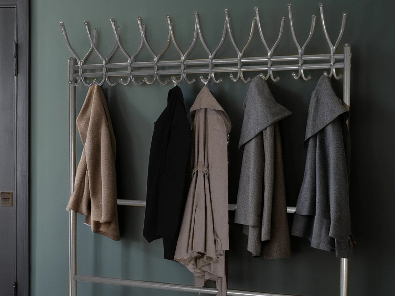 Вешалка рассчитана максимально на 20 посетителей: 20 крючков для одежды, столько же для головных уборов