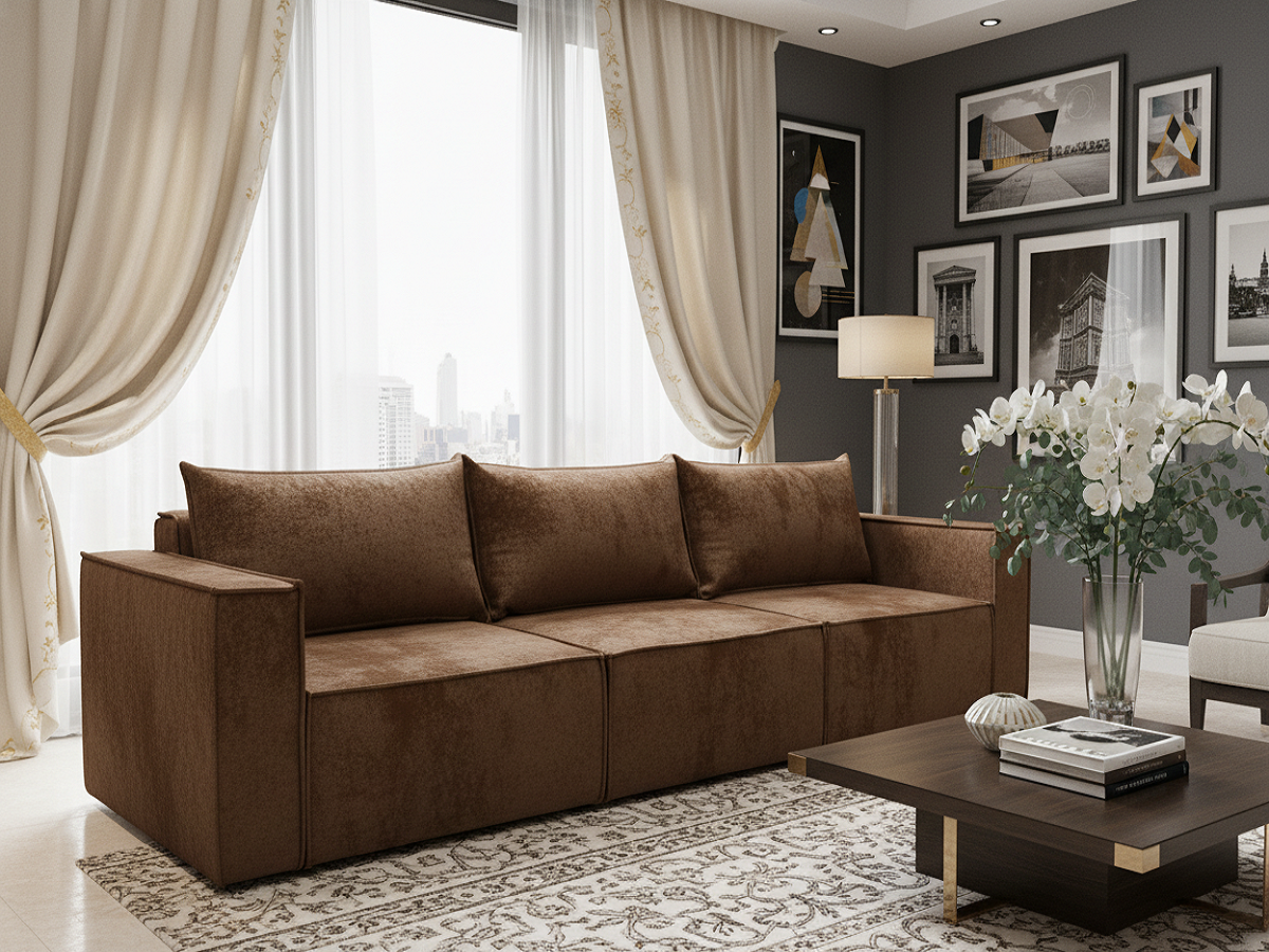 Отзывы о Столплит Диван-кровать Лофт 3-х модульный, плюш , с/м 145х266 Коричневый