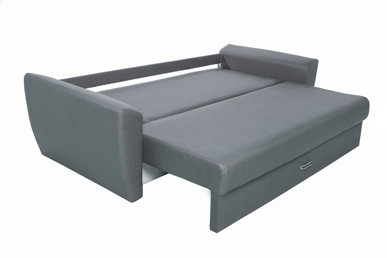 6. Пружинист и анатомичен. Мягкая мебель имеет удобный механизм трансформации «Еврокнижка», справиться с, которым может даже ребенок. Каркас: массив дерева(сосна), ДСП, фанера.