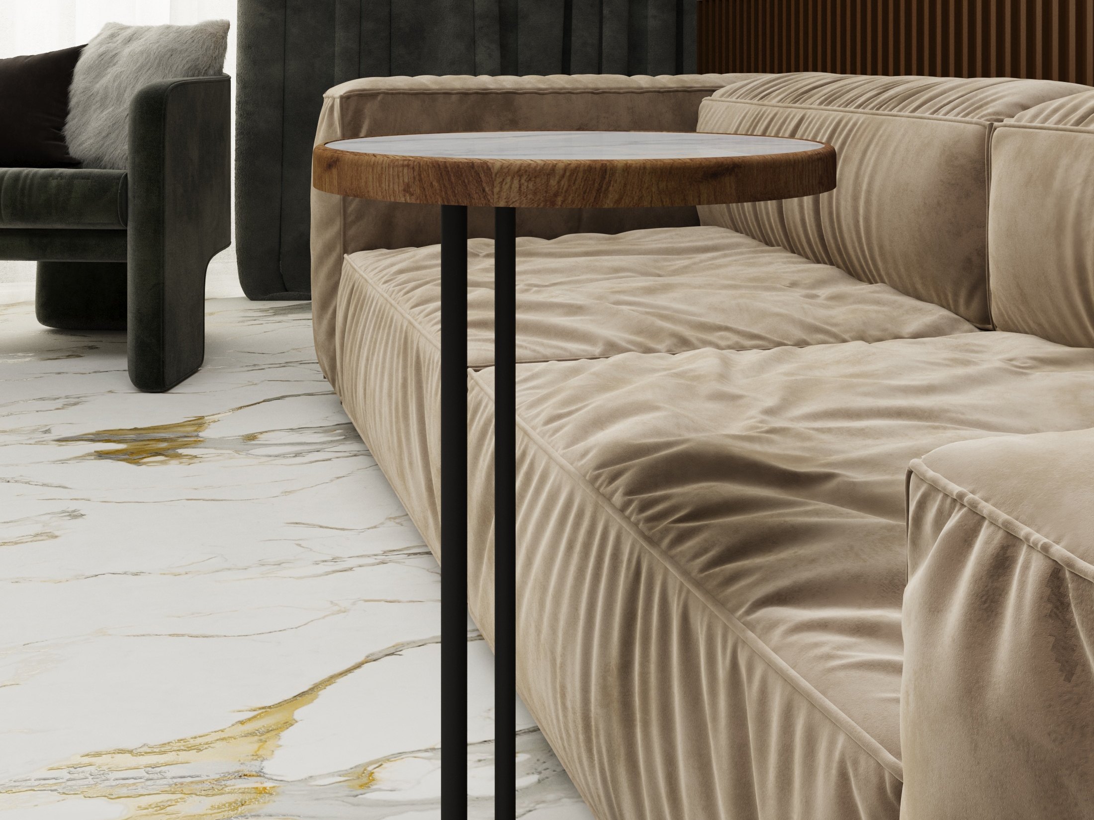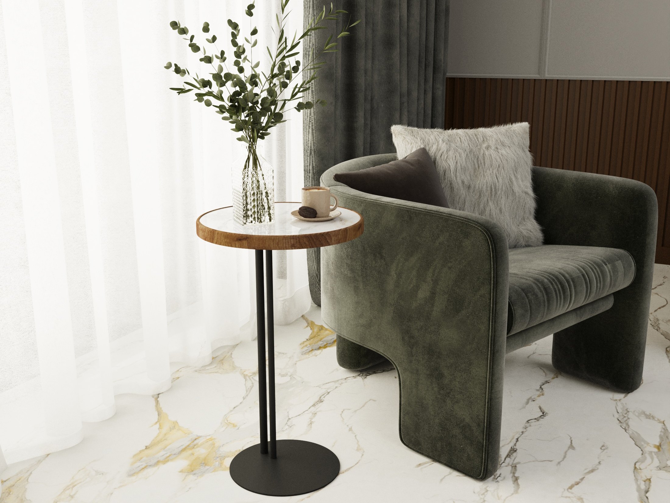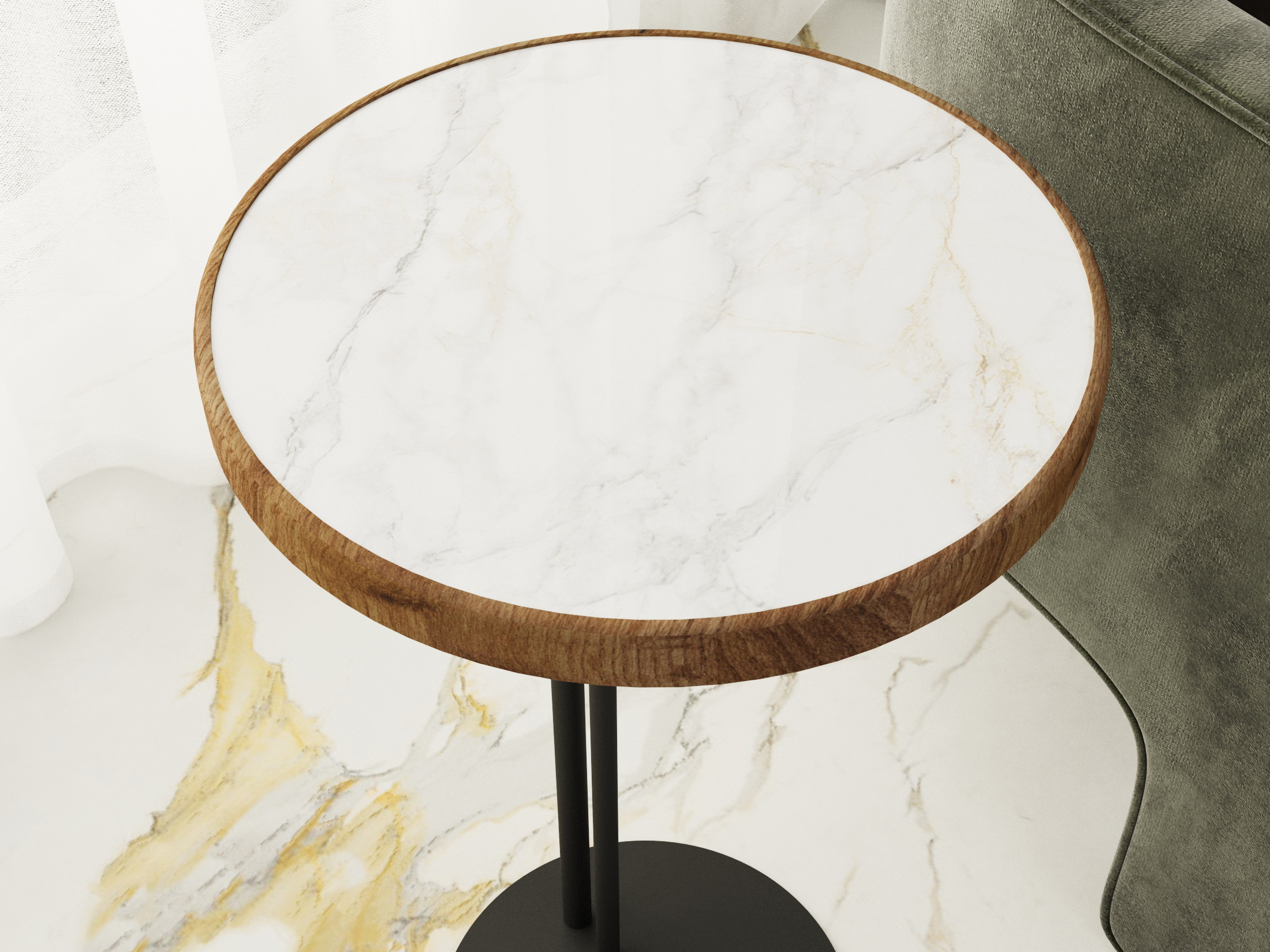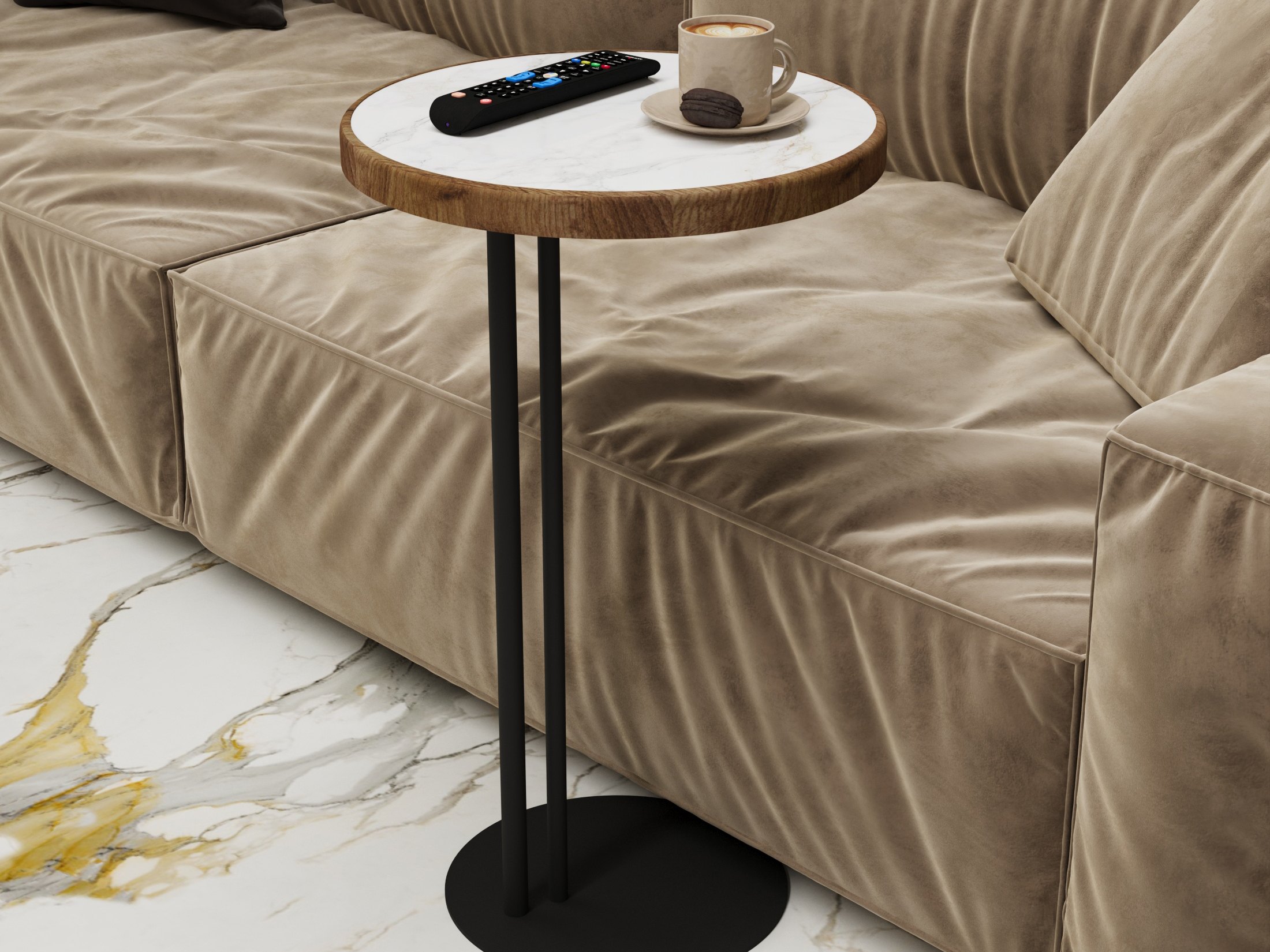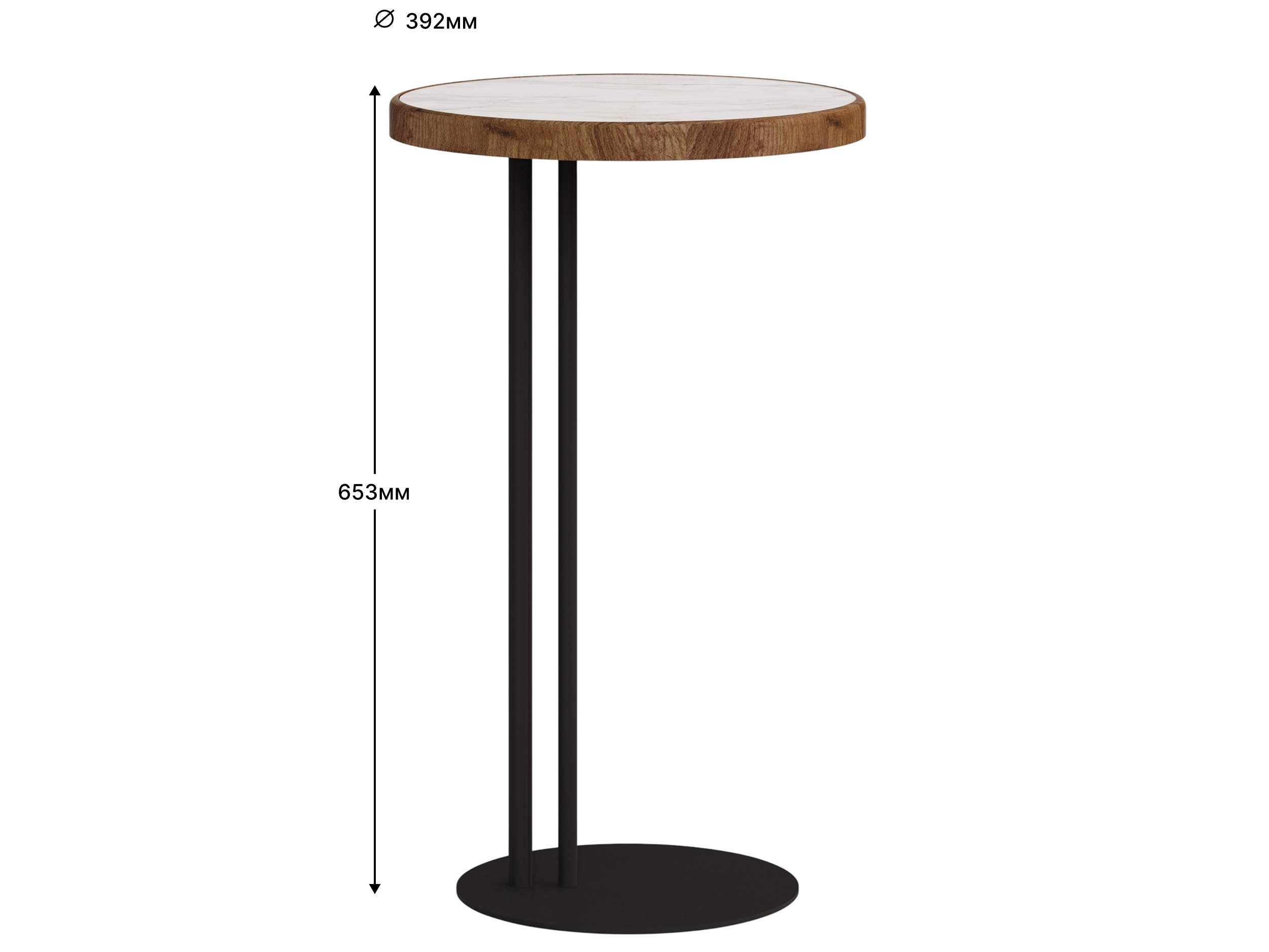 Придиванный стол "Кальяри" – практичный и стильный акцент для вашей гостиной или спальни. Столешница выполнена из МДФ. Практичный бортик по краю столешницы предотвращает соскальзывание предметов. Прочная и лаконичная металлическая ножка обеспечивает устойчивость конструкции. Высота столика 653 мм делает его удобным для использования рядом с диваном или креслом. Компактные размеры позволяют легко разместить его даже в небольшом пространстве. Максимальная нагрузка - 7 кг.