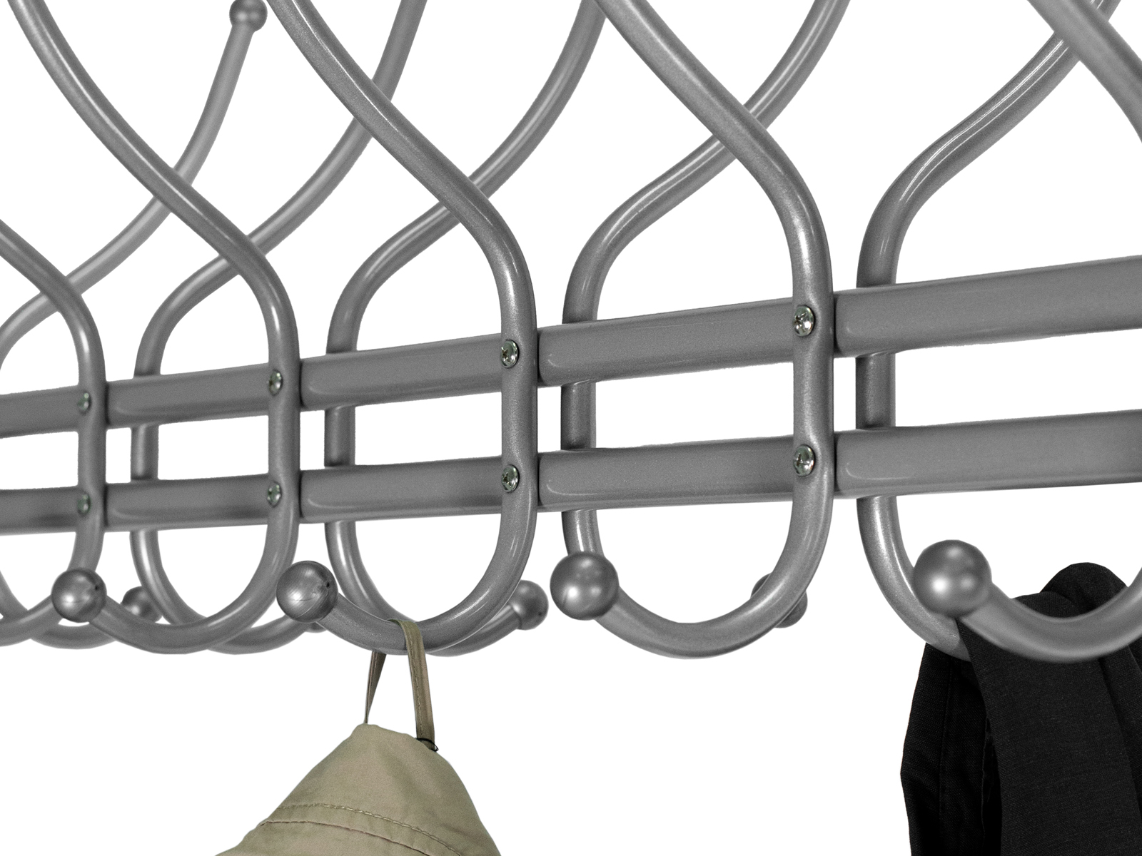 Вешалка М 12М — стильное и практичное решение для хранения одежды дома или в офисе. Прочная металлическая конструкция с полимерным покрытием, трубки диаметром 30 и 12 мм гарантируют надежность и устойчивость. Две линии крючков в форме цветочных бутонов выдерживают значительные нагрузки. Универсальная модель вместимостью до 24 комплектов одежды. Универсальная модель легко дополняется обувницей и зеркалом, создавая комфортную гардеробную зону.
