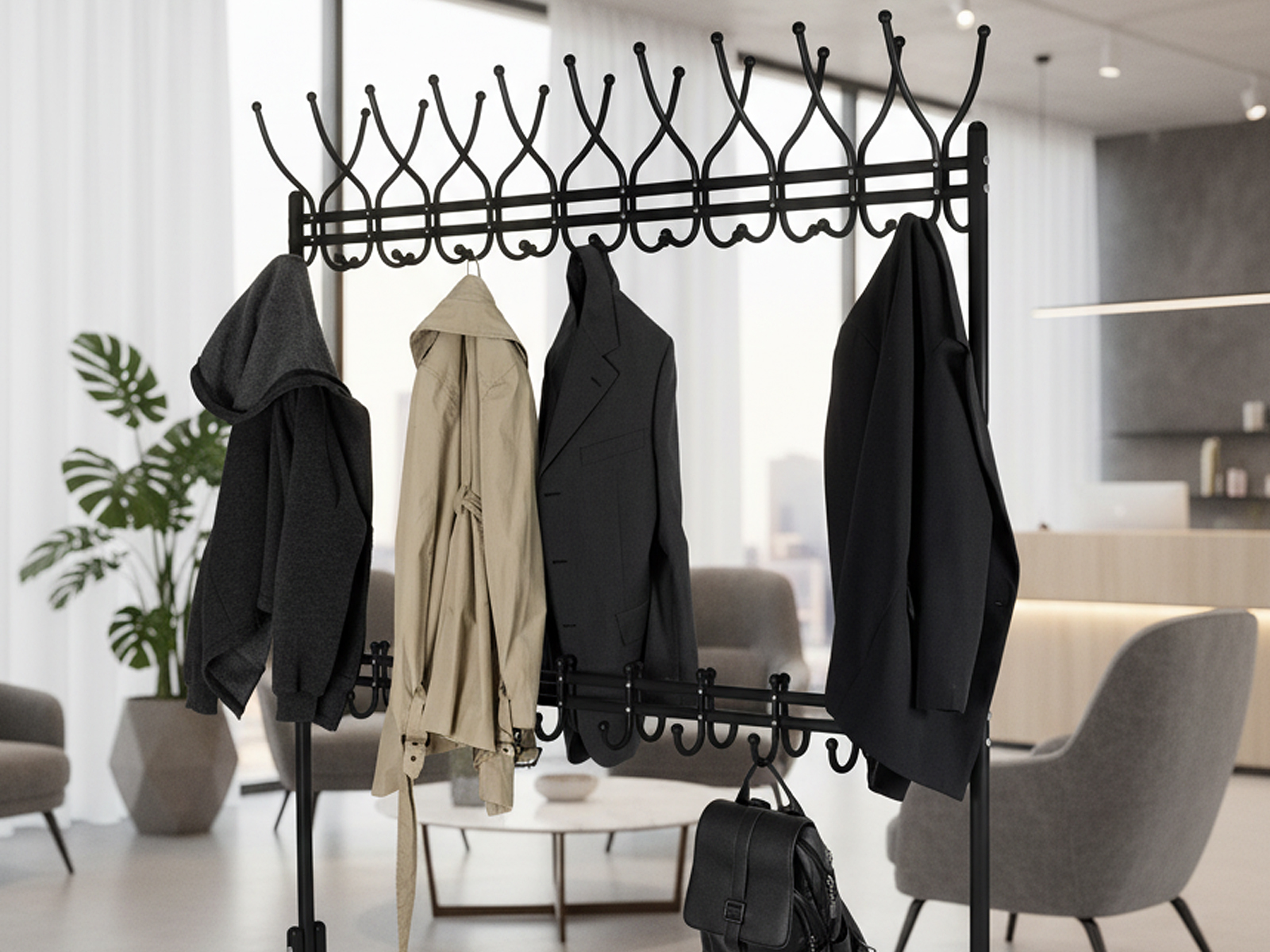 Вешалка М 12М — стильное и практичное решение для хранения одежды дома или в офисе. Прочная металлическая конструкция с полимерным покрытием, трубки диаметром 30 и 12 мм гарантируют надежность и устойчивость. Две линии крючков в форме цветочных бутонов выдерживают значительные нагрузки. Универсальная модель вместимостью до 24 комплектов одежды. Универсальная модель легко дополняется обувницей и зеркалом, создавая комфортную гардеробную зону.