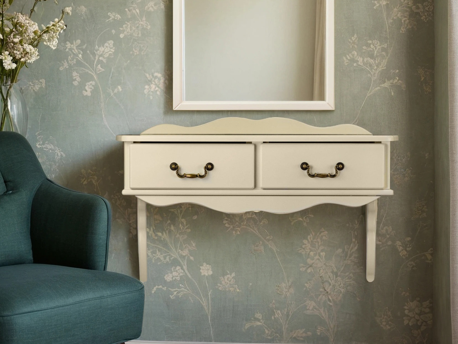 Подходит в классический интерьер прихожей, гостиной, спальни, будуара в светлых тонах. Элегантная конструкция, удобные ящики, крепление к стене.