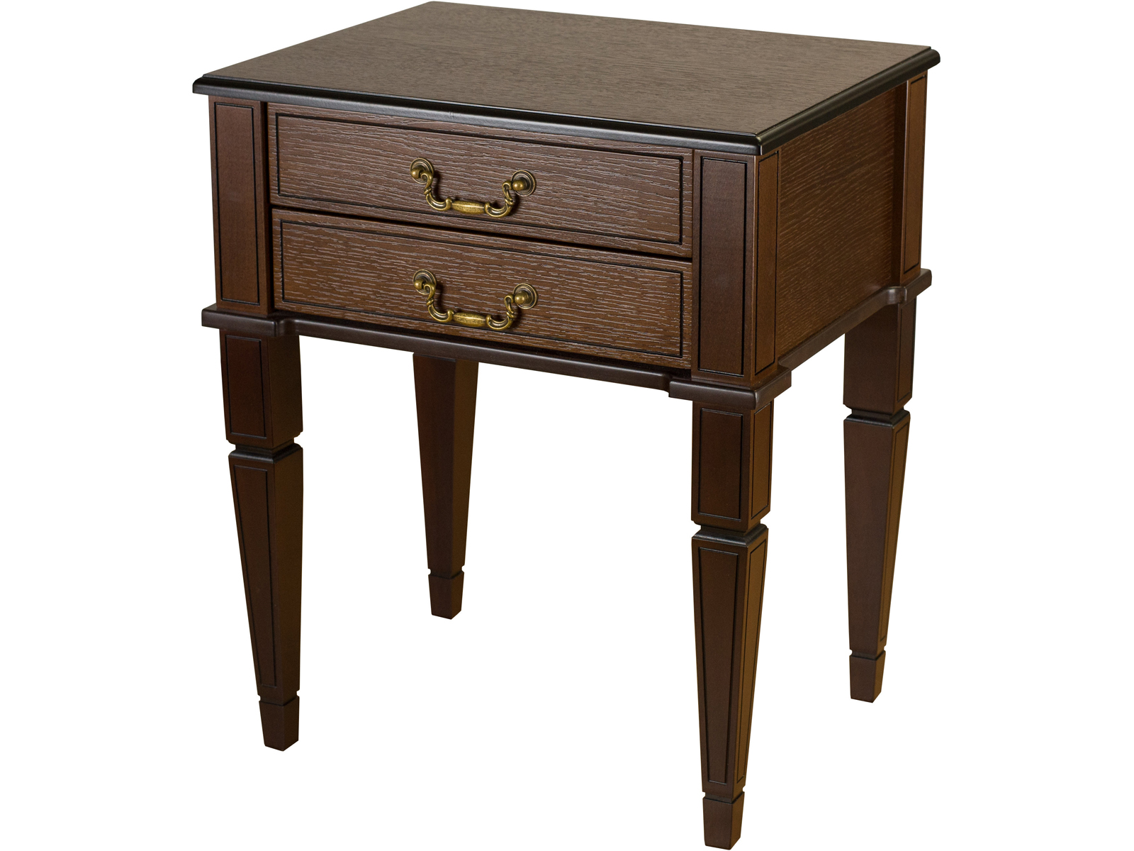 Прикроватная тумба Васко 118 – классическая прикроватная тумба из коллекции предметов интерьера Васко. Коллекцию объединяют изящно нанесенные гравировки на опоры и фасады ящиков и конусообразные ножки. Гравировки подчеркивают элегантные утонченные формы деталей предметов интерьера. Тонкие линии к тому же патинированы, что дополнительно выделяет их на изделиях. Фасады ящиков и поверхность тумбы декорированы натуральным шпоном дуба. Этот материал обладает выдающимся эстетическим свойством – текстура дерева проявляется даже под покрывными отделочными материалами. При этом не теряется ощущение теплоты от соприкосновения с натуральным деревом.