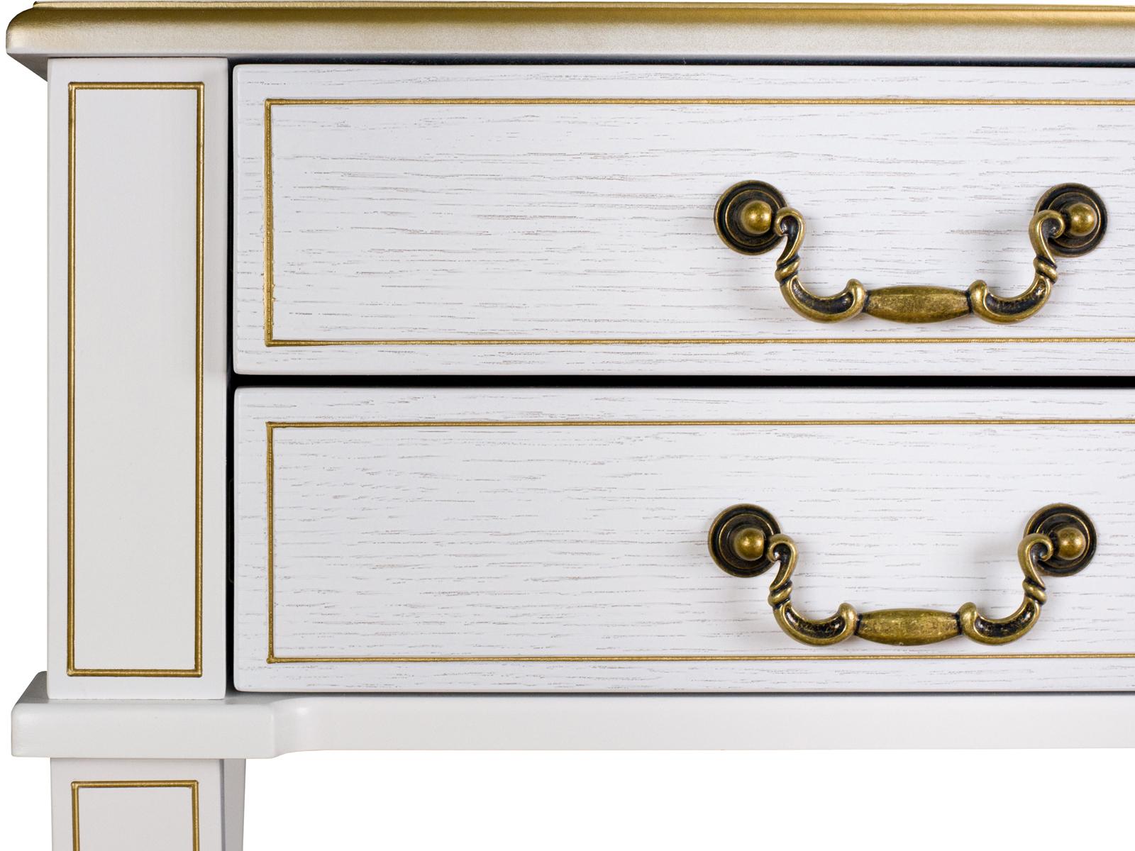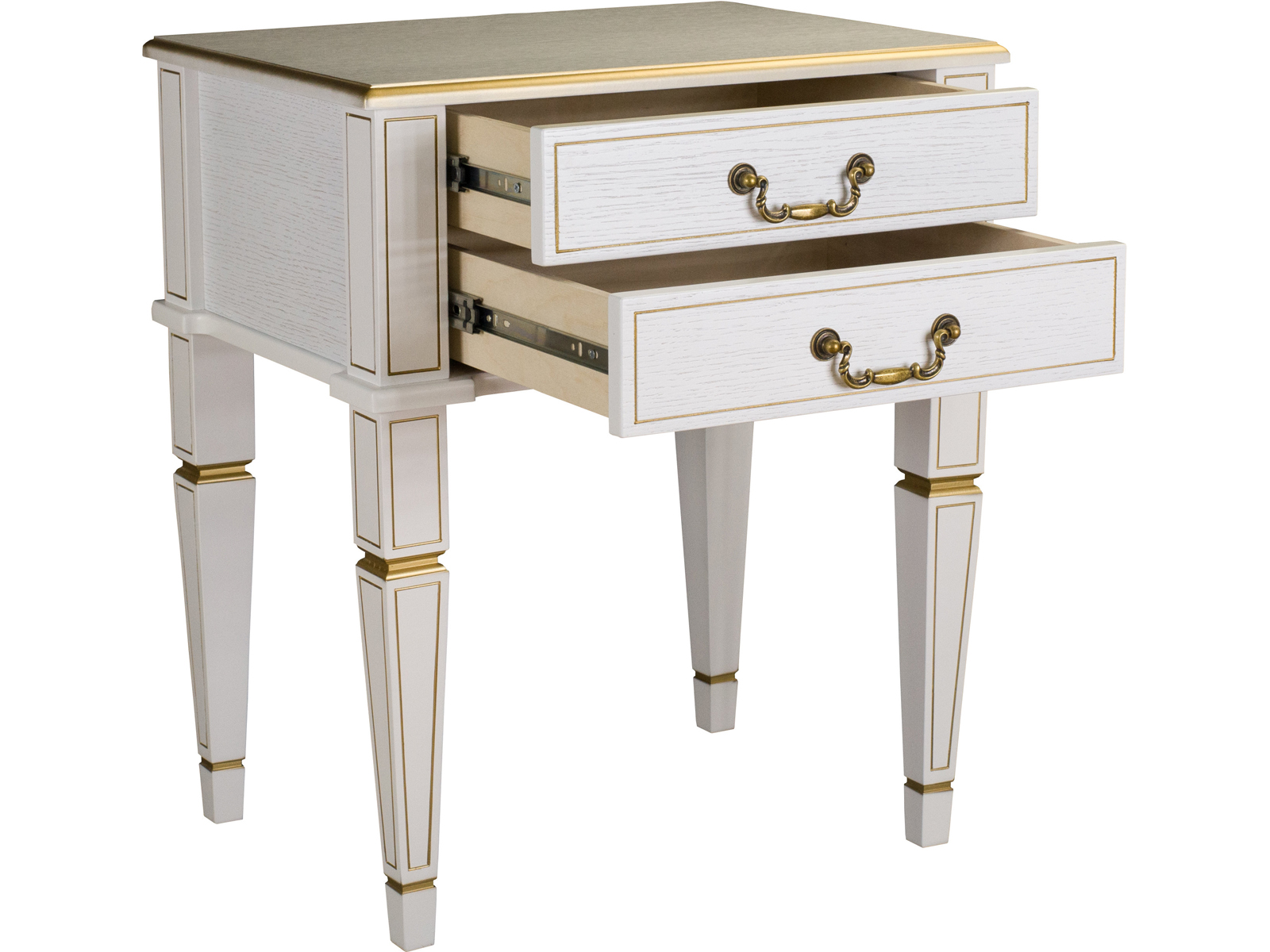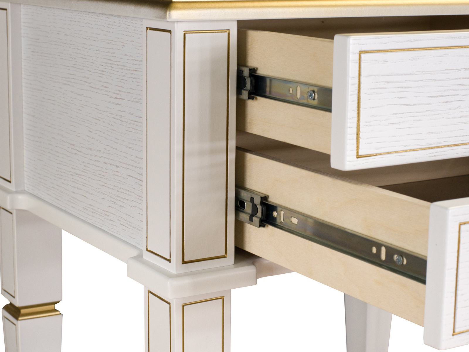 Прикроватная тумба Васко 118 – классическая прикроватная тумба из коллекции предметов интерьера Васко. Коллекцию объединяют изящно нанесенные гравировки на опоры и фасады ящиков и конусообразные ножки. Гравировки подчеркивают элегантные утонченные формы деталей предметов интерьера. Тонкие линии к тому же патинированы, что дополнительно выделяет их на изделиях. Фасады ящиков и поверхность тумбы декорированы натуральным шпоном дуба. Этот материал обладает выдающимся эстетическим свойством – текстура дерева проявляется даже под покрывными отделочными материалами. При этом не теряется ощущение теплоты от соприкосновения с натуральным деревом.