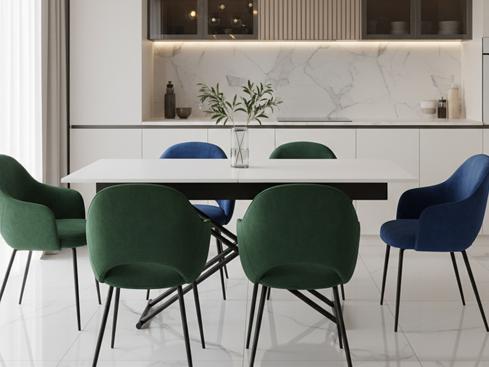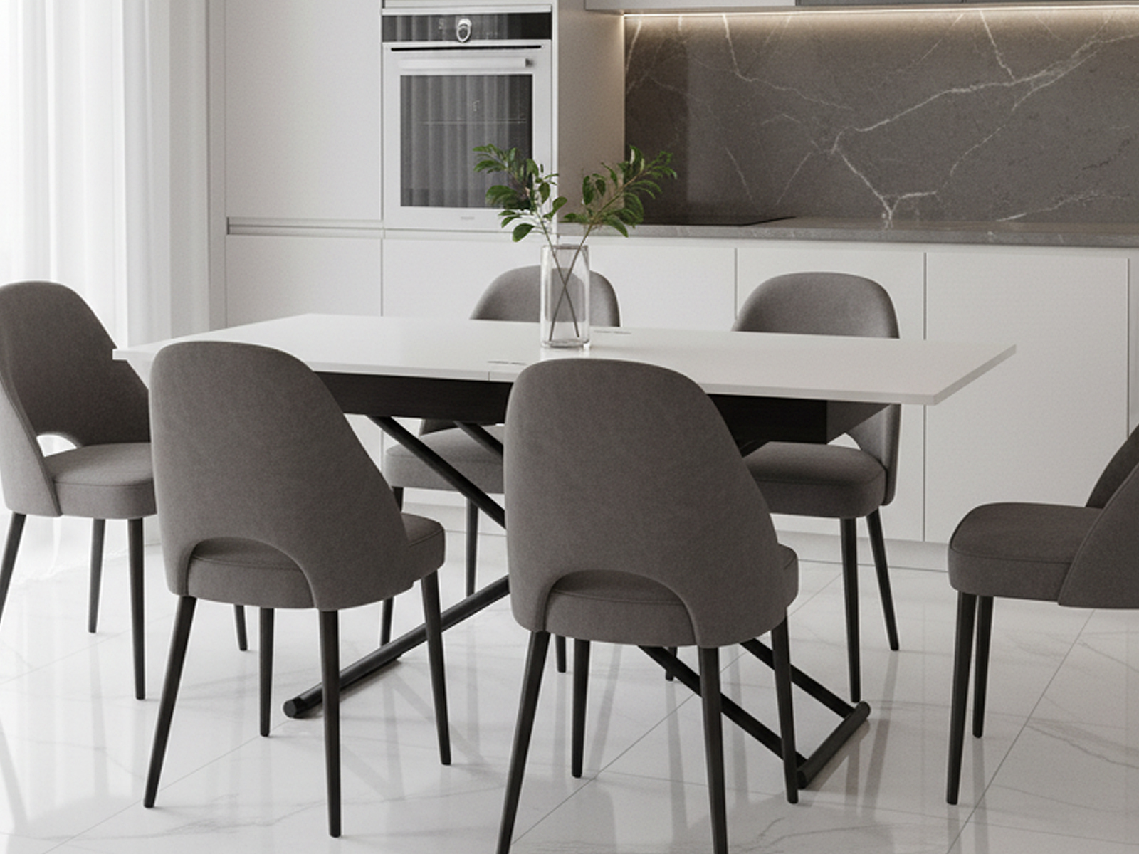 Раскладывающаяся столешница — это находка для тех, кто любит принимать гостей или просто хочет иметь больше пространства для творчества и работы. В сложенном виде она имеет размеры 550х900мм, в разложенном 1100х900мм. Лерон позволяет с комфортом разместить до 6 человек, а также оптимизировать пространство и повысить комфорт вашего дома.