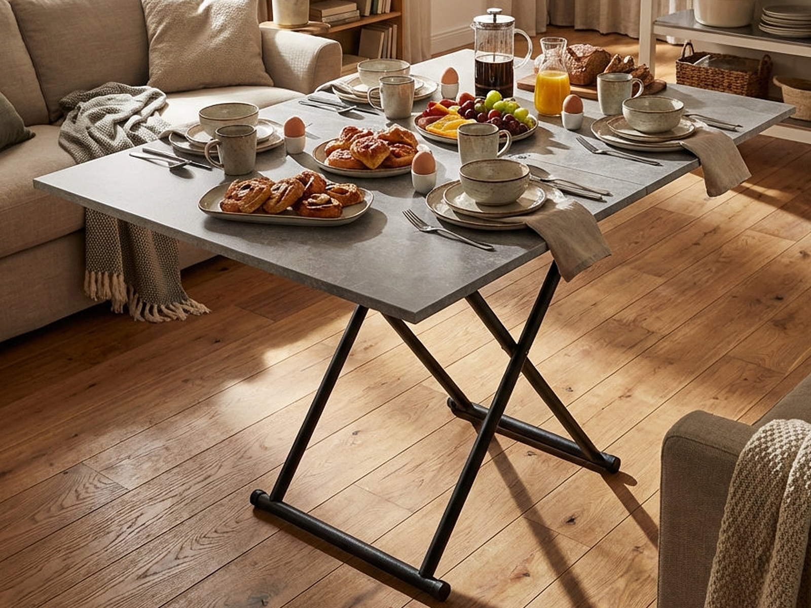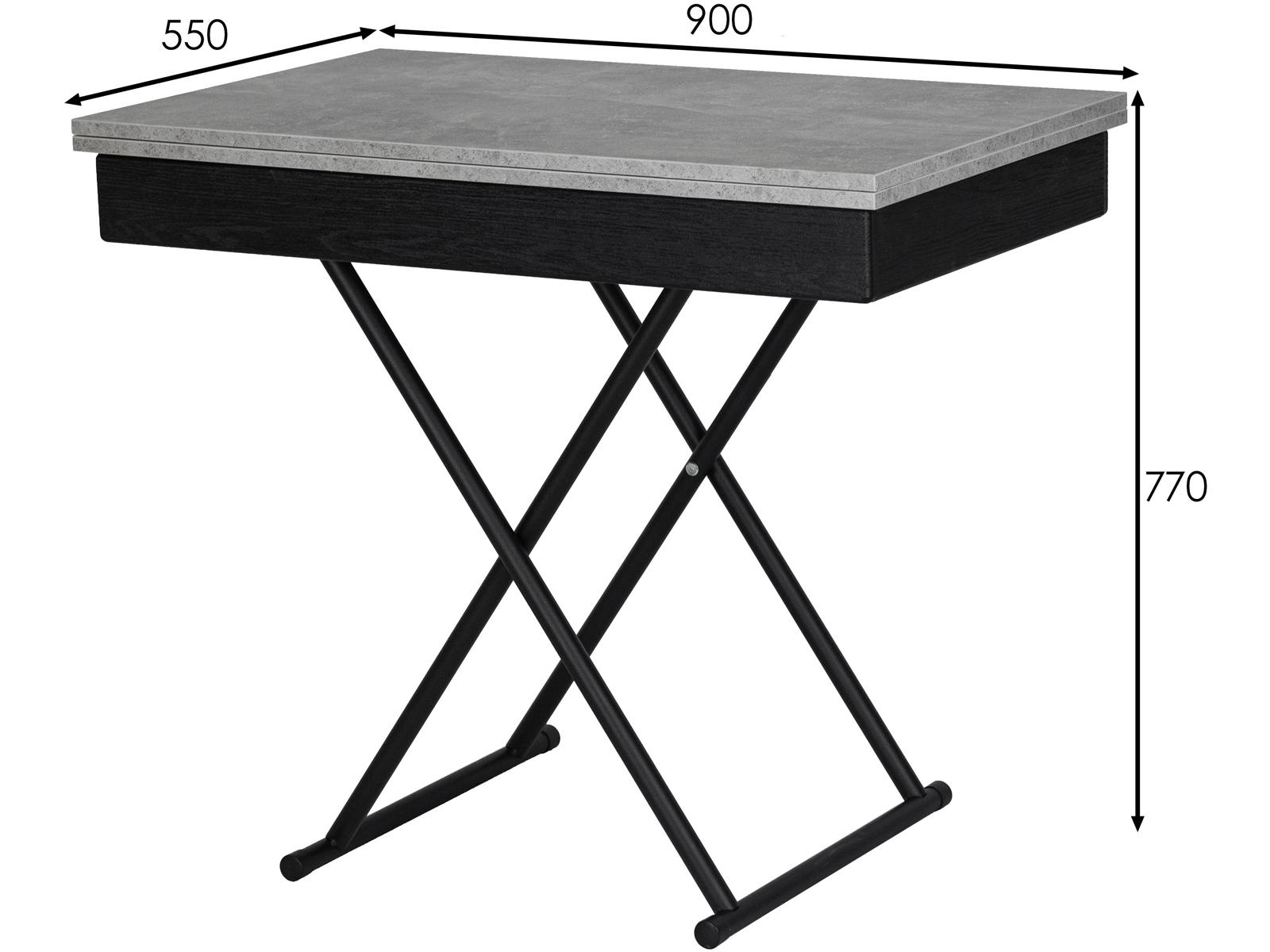 Раскладывающаяся столешница — это находка для тех, кто любит принимать гостей или просто хочет иметь больше пространства для творчества и работы. В сложенном виде она имеет размеры 550х900мм, в разложенном 1100х900мм. Лерон позволяет с комфортом разместить до 6 человек, а также оптимизировать пространство и повысить комфорт вашего дома.