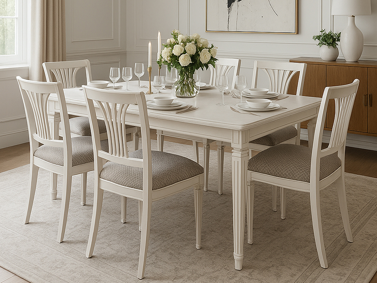 Обеденные столы серии Васко стилистически продолжают серию предметов интерьера этой коллекции и относятся к классическому стилю. Ножки изготовлены из массива бука – пожалуй, самой твердой породы дерева из тех, что принято использовать при производстве мебели в нашей стране. Столешницы выполнены из мдф покрытого шпоном натурального ясеня. Ясень – это дерево, отличающееся кроме прочности, одним из самых красивых рисунков текстуры. Этот стол украсит любой интерьер от классики до модерна.