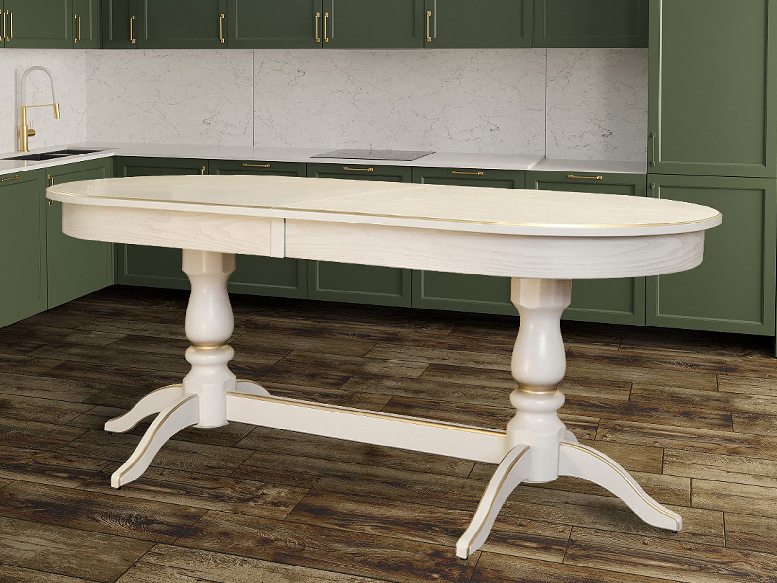 Стол обеденный раздвижной Тарун 5 подходит и для уютной гостиной, и для просторной столовой, благодаря своему дизайну и надёжной конструкции. Овальную форму столешницы для обеденного стола можно назвать самой богатой с точки зрения визуального восприятия. Две массивные вертикальные опоры, как и ножки выполнены из натурального бука.