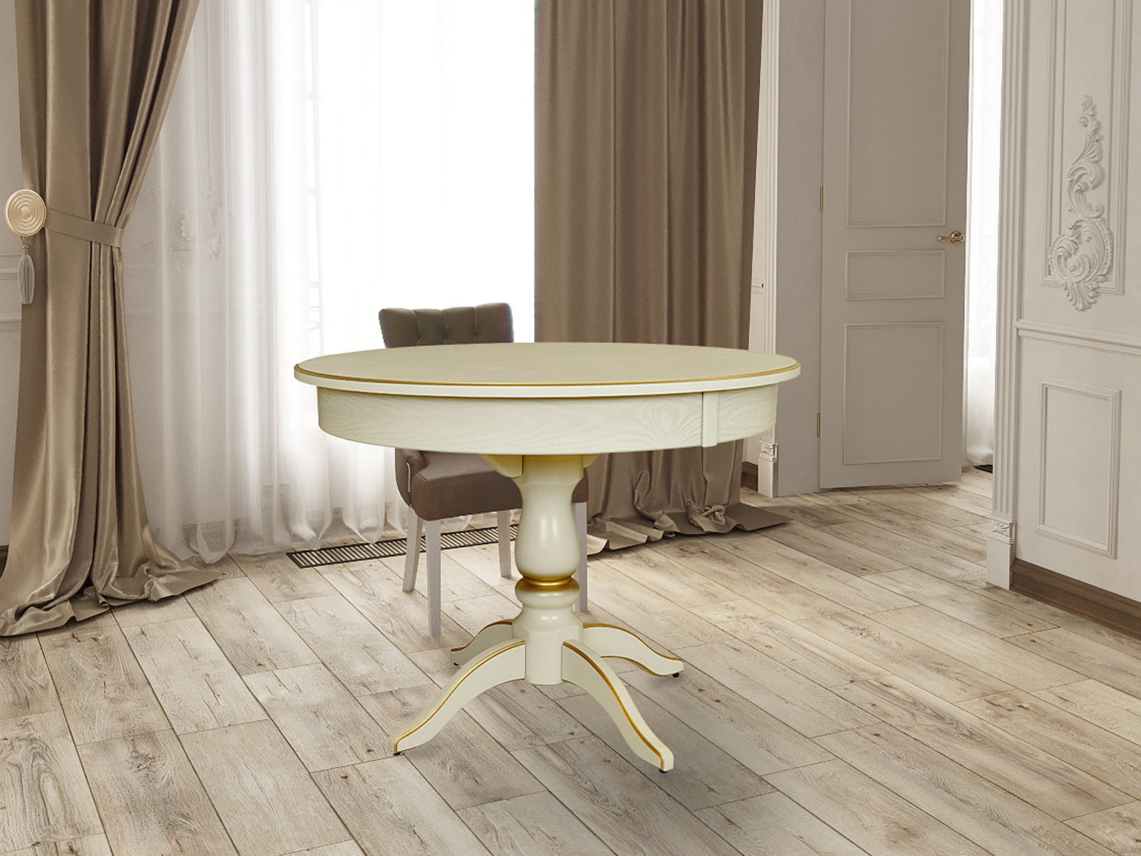 Стол обеденный Мебелик Моро 04 раздвижной 100/140*100 (Слоновая кость)