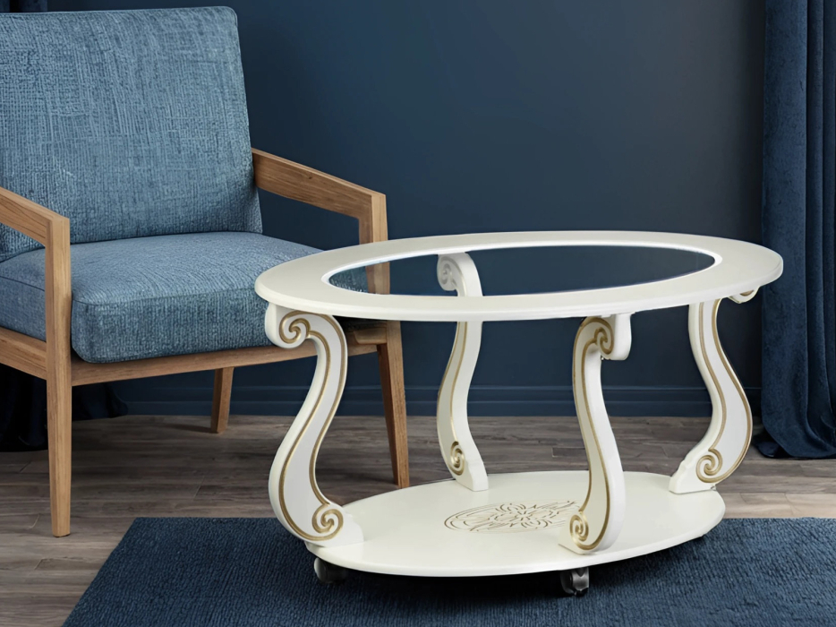 Стол журнальный Мебелик Овация (С) на колесах (Слоновая кость)