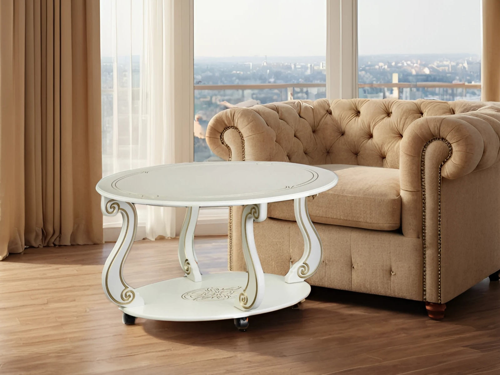 Стол журнальный Мебелик Овация (М) на колесах (Слоновая кость)