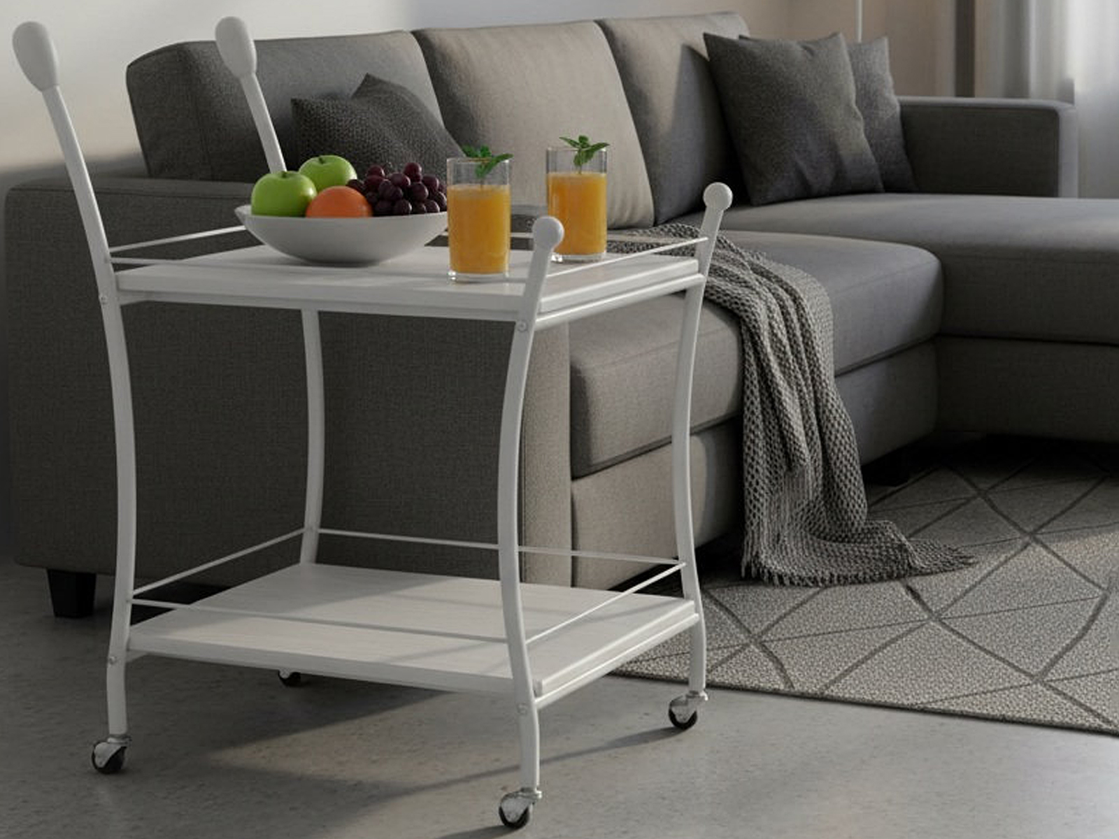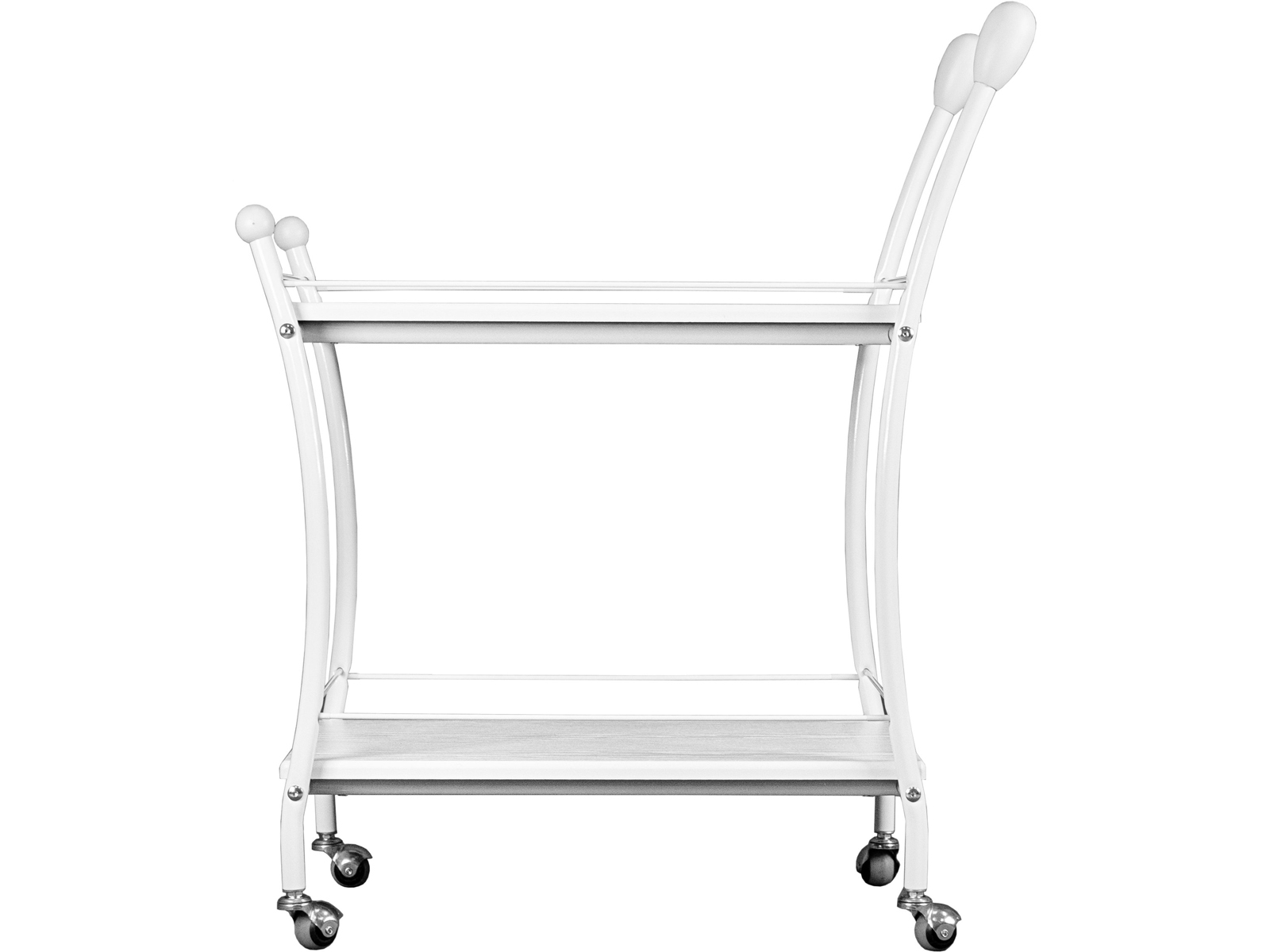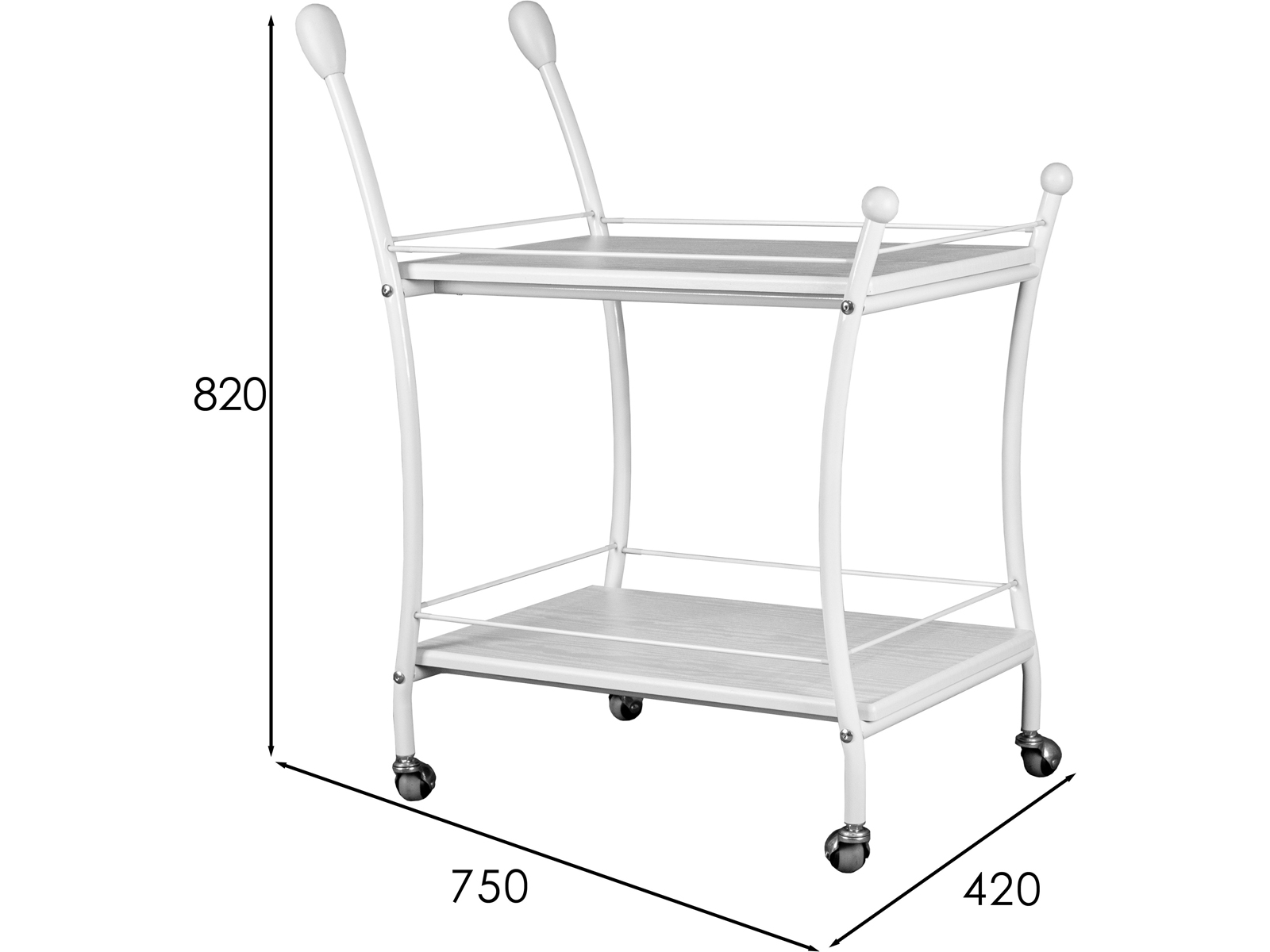 Сервировочный стол Марко — идеальное решение для тех, кто ценит стиль и функциональность. Металлический каркас, выполненный из высококачественного материала, гарантирует устойчивость и долговечность. Столешница и полка изготовлены из прочного МДФ, покрытого пленкой, что придает изделию элегантный и современный вид. Ограничители в виде металлических трубочек по бокам модели исключают возможность опрокидывания или соскальзывания предметов. Удобные ручки из дерева и прорезиненные колесики позволяют с лёгкостью перемещать универсальный предмет мебели между комнатами.
