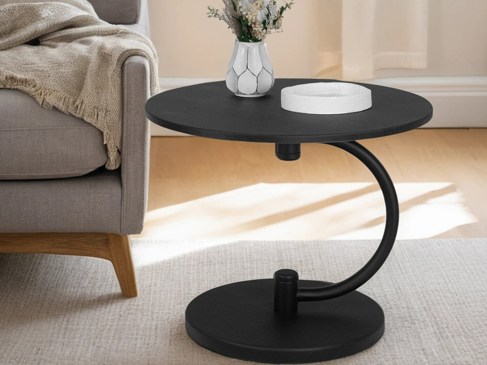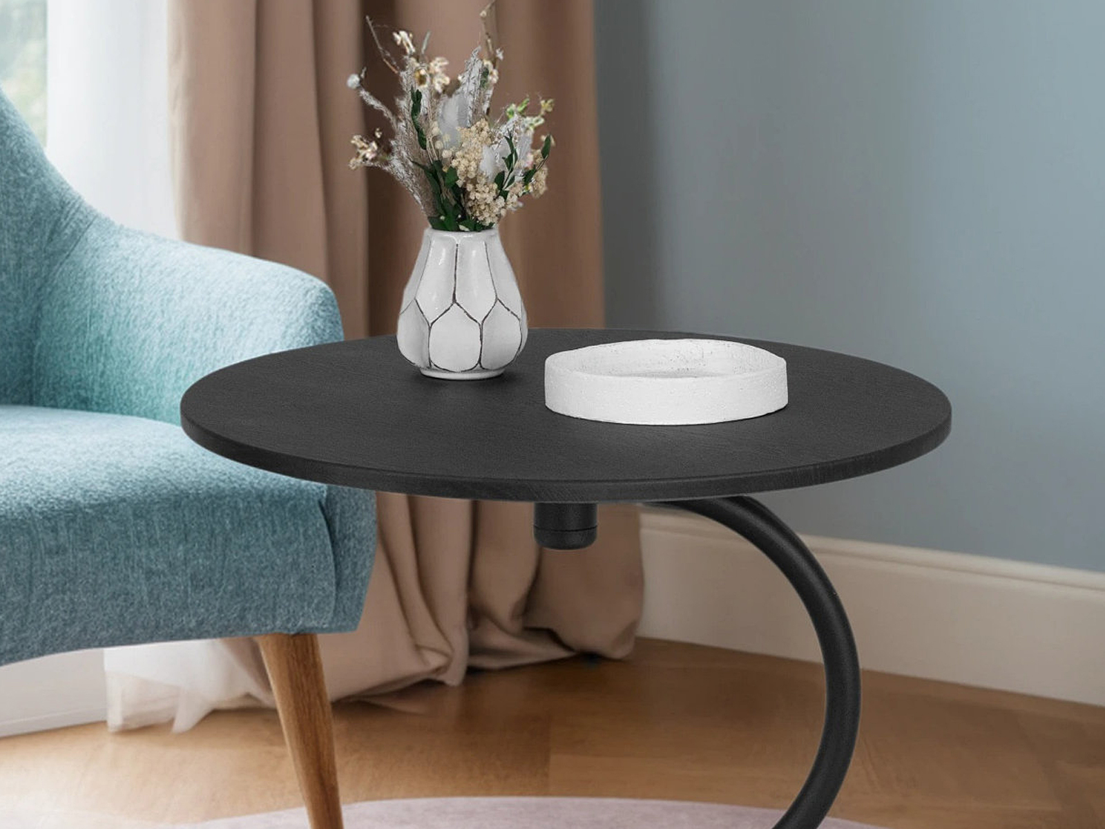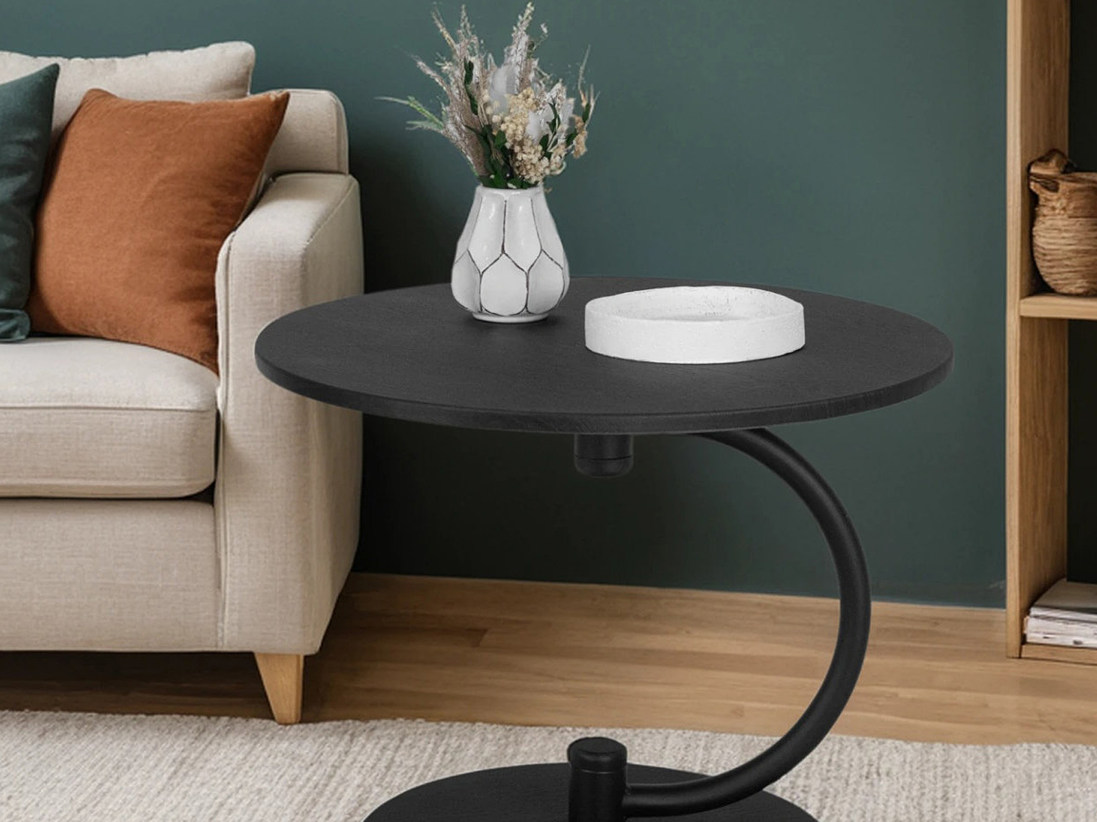Журнальный стол Дуэт 13 идеально подойдет для оформления современного интерьера в доме или квартире. Деревянная столешница выполнена из высококачественного МДФ и покрыта защитной пленкой. Изящная опора в виде полукруга изготовлена из прочного металла. Благодаря круглому основанию с диаметром 43 см из МДФ стол максимально устойчив. Этот журнальный столик подходит для использования в любых зонах вашего дома. Благодаря компактным размерам, он легко впишется в небольшое пространство, придавая особую изюминку.